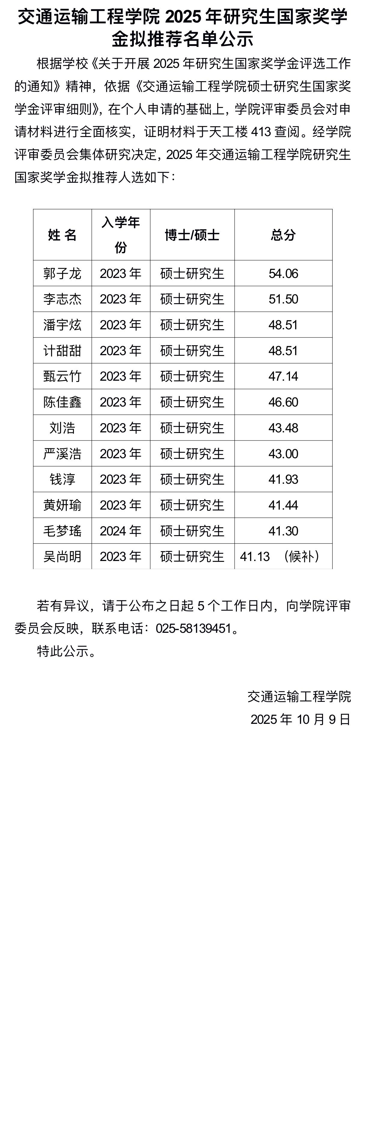 太阳成集团122ccvip2025年研究生国家奖学金拟推荐名单公示