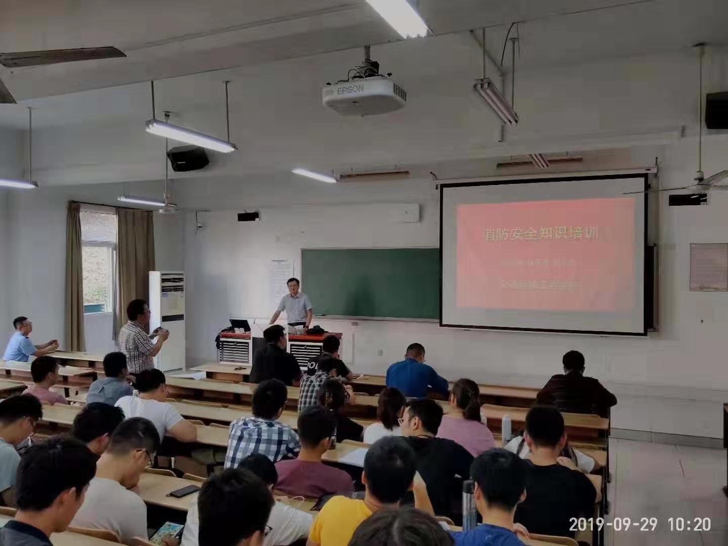 9月29日上午10点,太阳成集团122ccvip邀请南京市安民防火自救教育培训中心专家孔源于江浦校区仁智316教室举办了一场消防安全知识培训讲座。公司党委副书记、经理陈新民,党委委员、副经理蒋刚,院实验教学中心主任朱定华以及部分老师、2018级研究生及部分本科员工参加。培训讲座由蒋刚主持。