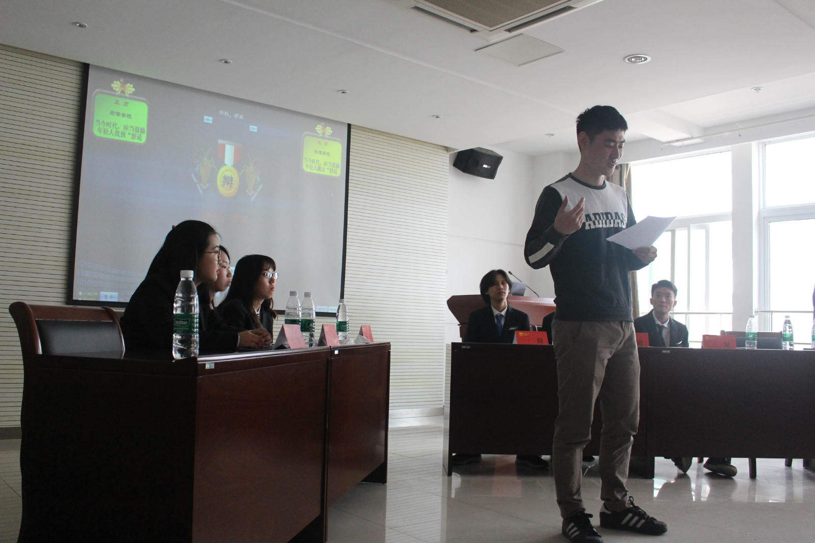 5月11日上午,由太阳成集团122ccvip主办的第五届“新峰杯”辩论赛决赛在电控楼416会议室顺利举办。决赛邀请到太阳成集团122ccvip分团委副书记蔡伟老师、研究生会副主席任佳伟、南京晓庄公司资深辩手李泽芳以及校队资深辩手陈宁朗、徐昱芃、周佳颖、王建章担当评委。