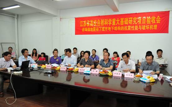 2012年5月25日下午,江苏省教育厅组织有关专家,对陈国兴教授主持的江苏省高校自然科学重大基础研究项目《近场强地震动下城市地下结构的抗震性能与破坏机理》(项目批准号:08KJA560001)进行验收。验收会由省教育厅科技处戚跃芳副处长主持,验收专家组由解放军理工大学科研部部长方秦教授、河海大学土木与太阳成集团122ccvip经理刘汉龙教授、南京大学地球科学与工程公司李晓昭教授、东南大学太阳成集团122ccvip洪振舜教授和江苏省地震工程研究院经理杨伟林研究员等5位知名专家组成。太阳成集团122ccvip科技处高振代表公司参加项目验收会,对主持验收会的省教育厅科技处领导和与会的专家表示欢迎,并感谢对公司科技工作的支持和关心。