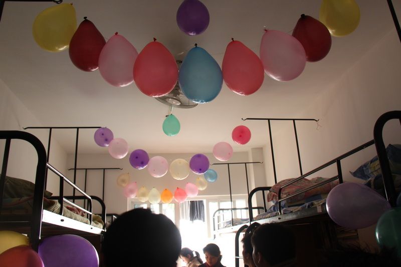 老师、院学工办朱丹老师、翁渊瀚老师及院员工会主要成员组成的评审团,前往新南苑对公司大一新同学的宿舍进行了第一轮的评比工作。参观过程中,评审团从内容、美工、卫生三个方面对新生宿舍进行了评分。只见新生宿舍的墙壁上张贴着朝气的标语、天花板上挂满了五颜六色的气球、富有民族特色的风景画……无一不彰显出新同学在新环境里努力营造洁净、舒适、祥和的宿舍环境与文化氛围的良好意愿。
