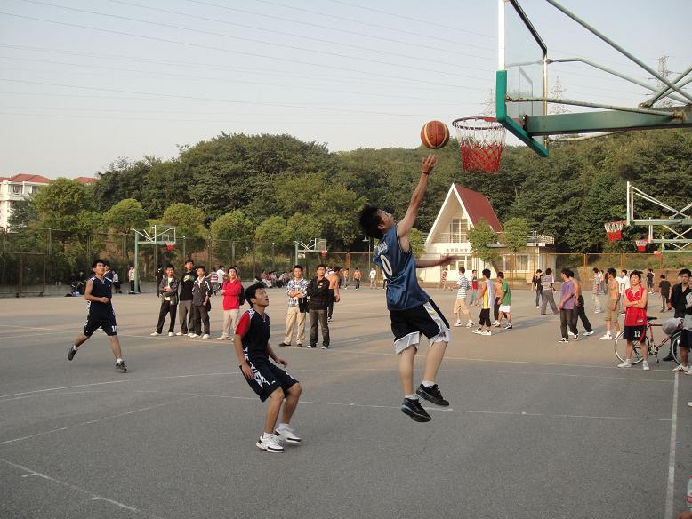 当天下午的东苑篮球场甚是热闹。伴随着一声哨响,篮球赛在大家的期待与欢呼中激烈展开。上半场伊始,老生队员先抢到球,以迅雷不及掩耳之势突破上篮,率先得分,现场掌声雷动。大一新生也不示弱,紧追不舍,通过几次成功的传球,一个漂亮的三步上篮将比分拉近,响亮的加油呼喊声不断在球场上空回荡。篮球赛打得相当精彩,在场所有观众全都目不转睛地关注着球赛的进展。