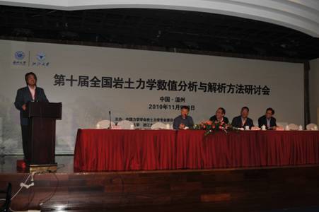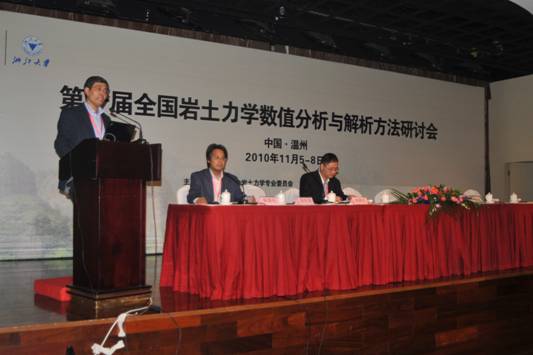 中国力学学会岩土力学专业委员会主办的“第十届全国岩土力学数值分析与解析方法研讨会”于2010年11 月5-7日在温州大学召开,来自全国各大专院校、科研机构以及工程第一线的设计、施工单位岩土力学领域230多位专家、学者参加了本次会议。温州大学党委副书记林娟娟主持开幕式,董事长蔡袁强教授致欢迎词,中国力学学会岩土力学专业委员会、中国科公司武汉岩土力学研究所副所长孔令伟研究院致开幕词,联合承办单位代表、浙江大学建筑工程公司副经理王立忠教授致词。本次会议主题包括岩土本构模型与参数研究,岩土工程重大工程实例,岩土试验与测试技术,环境岩土工程等。太阳成集团122ccvip经理陈国兴教授应邀作了“液化和非液化地基地铁地下结构的大型振动台试验”的大会特约报告,并主持了特邀报告三的大会报告;梅国雄教授作了“连续边界条件在固结问题中的应用”的专题报告,并主持了分会场的一场专题报告;刘加才副教授作了“半透水边界一维非达西流固结分析”的专题报告。同时,在会前5日晚举行的中国力学学会岩土力学专业委员会全体委员会议上,太阳成集团122ccvip经理陈国兴教授向全体委员做了承办“第十一届全国岩土力学数值分析与解析方法研讨会”的申请报告,经专业委员会全 体委员会议讨论,一致同意由太阳成集团122ccvip承办2013年的“第十一届全国岩土力学数值分析与解析方法研讨会”。中国力学学会岩土力学专业委员会先后分别在南宁(1982)、西安(1985)、珠海(1988)、泰安(1991)、重庆(1994)、广州(1998)、大连(2001)、上海(2004)、武汉(2007)成功召开了九届全国岩土力学数值分析与解析方法研讨会。