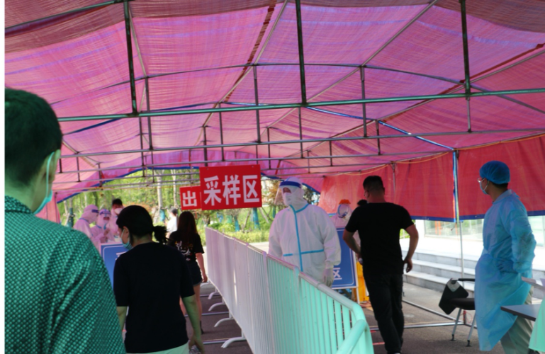 研究生郝耀东和夏兴泉同学暑期留校开展科研工作,疫情发生后积极响应南京团市委号召,踊跃报名江浦街道核酸检测点的志愿者,协助做好核酸检测的信息登记等工作。