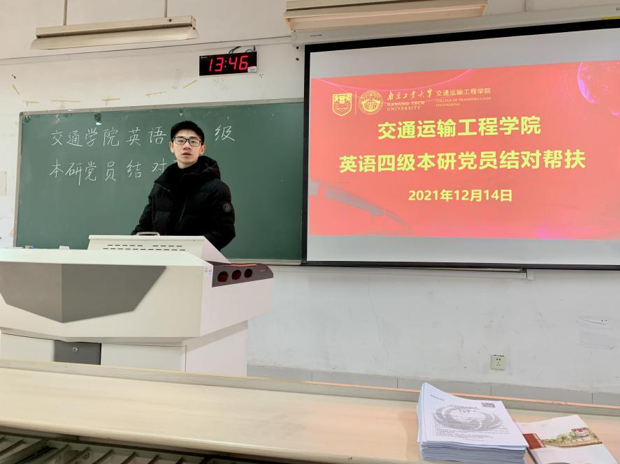 为进一步贯彻落实“学党史 悟思想 办实事 开新局”和“两在两同”建新功行动精神,使18级少部分同学顺利通过12月的老员工英语四级考试,为提升就业质量奠定坚实基础,12月14日下午,公司于仁智楼221教室举办“两在两同建新功 结对帮扶办实事”英语四级本研共建主题党日活动。18级辅导员袁志平老师、硕士研究生第三党支部书记储城鑫、支部党员代表、18级本科生四级未通过同学参加活动。