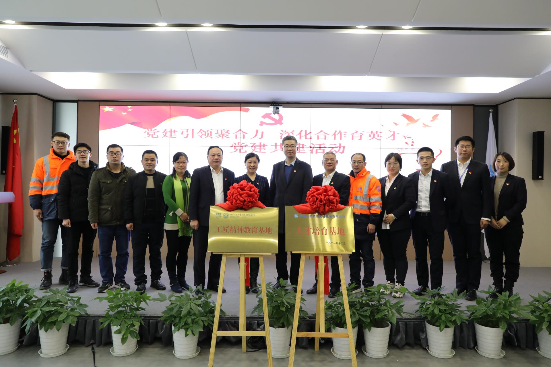 许翠梅书记和苗德胜副书记代表双方进行了党建共建签约仪式,经理周峰和总工程师唐立宪代表双方进行了“人才培育基地”和“工匠精神教育基地”揭牌。