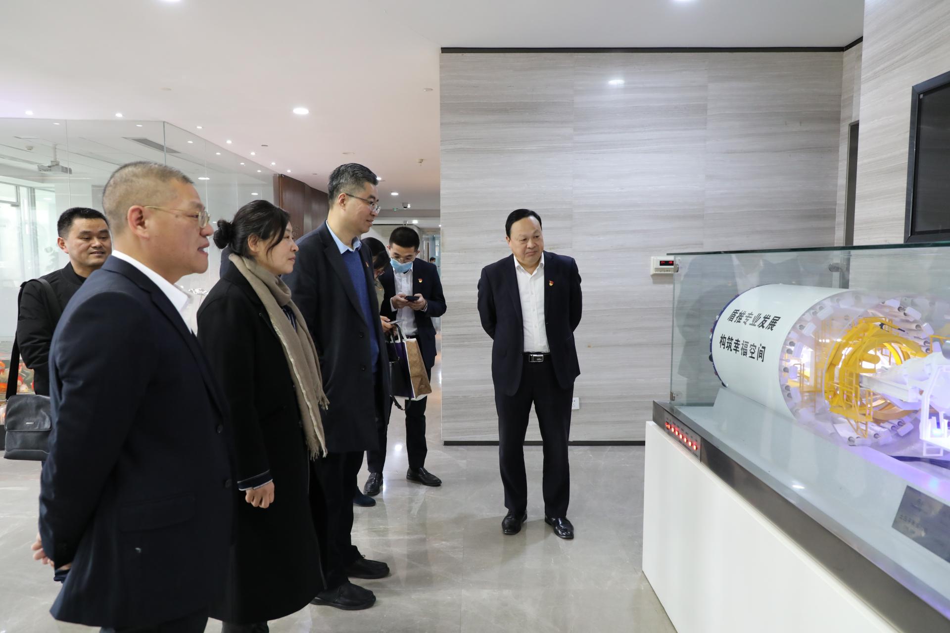 共建双方实地参观了劳模创新工作室、盾构机模型和公司展厅,观看了企业工作汇报片、音诗画表演后,苗德胜副书记致欢迎词,表示在建党100周年之际开展党建共建对深入贯彻党的十九届六中全会精神,创新企业党建工作具有重要意义。许翠梅书记表示感谢,介绍了公司党建总体情况,解读了公司和公司的发展目标和“1+2+N”党组织共建新模式,希望将企业的铁军精神融入思政教育,激励公司学子奋发有为,勇于担当。