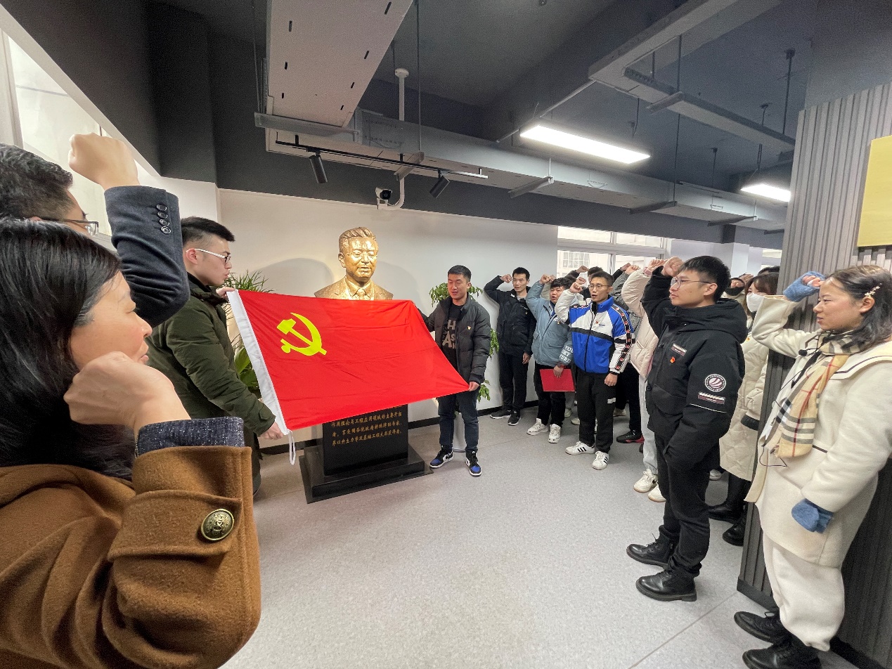 1月5日下午,太阳成集团122ccvip于天工楼4楼楼道宰金珉雕像前开展新党员集中宣誓活动,公司党委书记许翠梅、经理周峰、组织员闵珍、全体辅导员、员工党支部书记及新发展党员参加活动,活动由闵珍主持。
