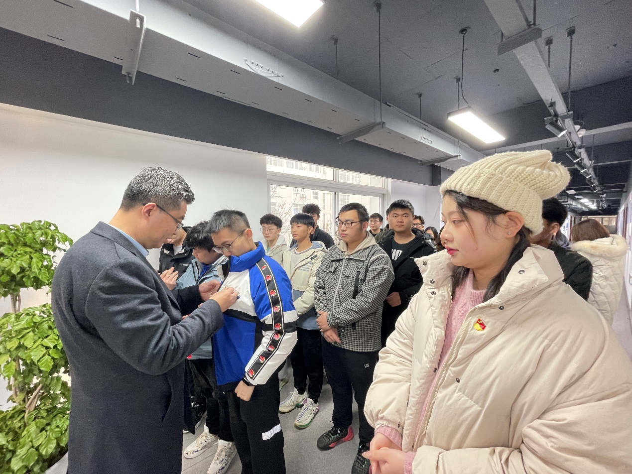 师生们来到宰金珉教授雕像前,向雕像鞠躬致敬。在场老师和支部书记们代表老党员给新党员们一一佩戴党员徽章,激励新党员党徽象征着党员身份、责任和担当,鞭策新党员不忘初心、牢记使命,自觉履行党员义务,听党话、感党恩、跟党走,全心全意为人民服务。