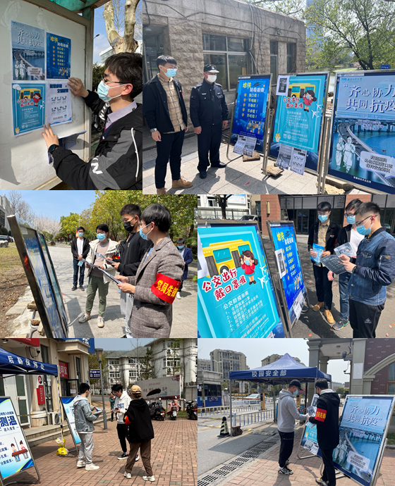 活动连续推出五个环节。一是海报宣传。制作“齐心协力、共同抗疫”“防范疫情、文明就餐”“地铁防疫指南”“公交出行,戴口罩哦”等通俗易懂的精美海报在食堂、教学楼、超市、校门口等公共场所进行宣传。二是发放口罩。在公司公共场所给没戴口罩的师生发放口罩和宣传单,累计发出2000只口罩,500张宣传单,提醒督促师生做好细节防控。三是党员值守。支部党员组成的“党员先锋队”协助师生有序参加常态化核酸检测、食堂体温检测,深入宿舍手把手指导防控技能。四是现场采访。党员们针对员工、教师、机关管理人员三类人群,食堂、快递站、保卫室等三个重点场地进行了走访调查,并制成了采访视频文档。五是线上调研。线上共进行了300份问卷,调研师生对于疫情防控的态度、相关措施执行实况,对公司抗疫的意见建议等。近期将对采访调研内容总结提炼后作进一步宣传。