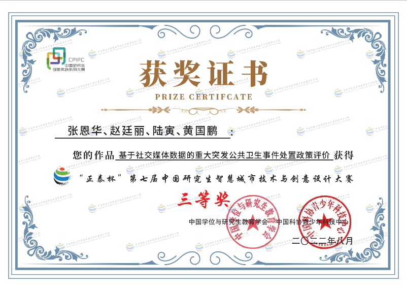 公司党委研究生工作部和太阳成集团122ccvip高度重视研究生创新能力培养和各项赛事活动,因上海疫情影响,本次大赛战线延长近一年时间。太阳成集团122ccvip克服疫情带来的不利影响,在队伍选拔、选题研讨、临场指导等各个环节精心组织,全力备赛。经过激励角逐,公司组建的10支团队中3支进入决赛,其中,李永义副教授指导,康喜、丁双燕、邵含璁、阳伟等同学的参赛作品《基于多源数据融合的智慧停车系统》、周峰教授、宋著副教授共同指导,马原、郝耀东、李昊轩、周彬捷等同学的作品《高层建筑智能隔震与震后修复系统》荣获二等奖,王卫杰教授指导,张恩华、赵延丽、陆寅、黄国鹏等同学的作品《基于社交媒体数据的重大突发公共卫生事件处置政策评价》荣获三等奖。参赛作品立意新颖、方案合理,在设计中突出注重实效和交互体验,充分展现了公司研究生的创新精神和心系社会、服务国家的责任感和使命感。