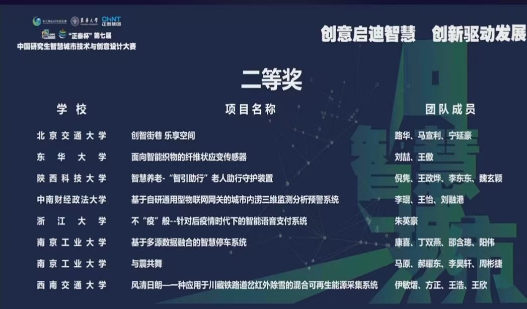 公司学子在“正泰杯”第七届中国研究生智慧城市技术与创意设计大赛中获佳绩