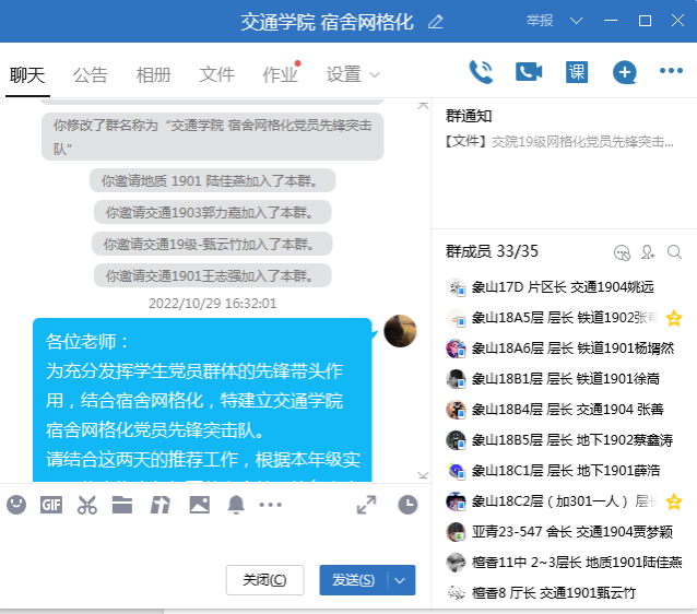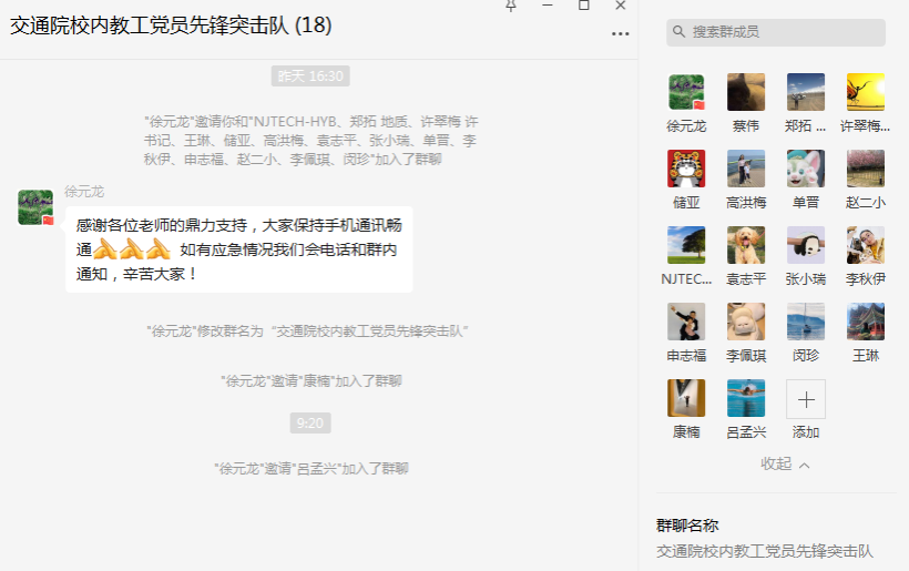 公司工会在公司党委领导下,强化担当作为,第一时间精准掌握校内外集中师生动态,将滞留在江浦校区无房教工建立“10月26日战友群”;动校内教工互帮互助,并统一部署滞留教工疫情防控和后勤保障工作,在基本保障的基础上注重品质提升;组建党员先锋突击队”“员工党员先锋突击队”,用心做好“大后方”工作;摸排关心公司离退休老教工疫情期间的生活保障,特别是对有残疾、生活困难的老教工做到专人联系,单线沟通。
