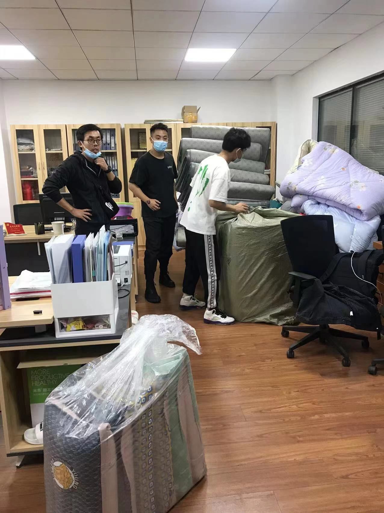 辅导员第一时间住进办公室、会议室,用一张张折叠床与员工同在,共筑暖心家园。公司党委书记许翠梅、副书记徐元龙第一时间带领辅导员深入员工宿舍,了解同学们的思想动态、学习、生活和心理状态,掌握宿舍网格员制度执行情况,推动党员先锋作用充分发挥,加强重点关注员工的学习和情绪关注,积极前往食堂开展疫情应急处置志愿服务。辅导员、班主任对家长来电来信逐一解答,及时传递公司疫情防控动态,让家长放心;及时回应同学们的疑问和诉求,得到同学们的理解和配合。