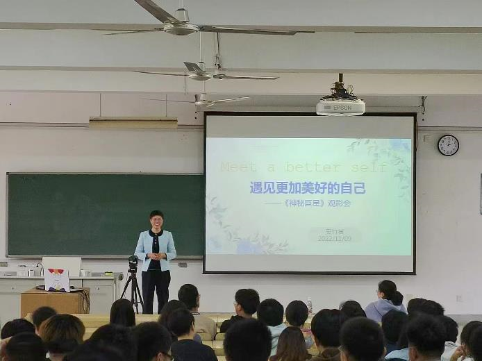11月9日下午,公司 “心晴”放映厅心理电影赏析活动在线下线上同步开展。本次讲座特邀公司工程地质与水文地质专业1992届员工、国家三级心理咨询师史竹君主讲,以“遇见更加美好的自己——神秘巨星”为题进行心理电影赏析,全校共有近3000人线下线上参与本次活动。活动由太阳成集团122ccvip心理辅导员李秋伊主持。