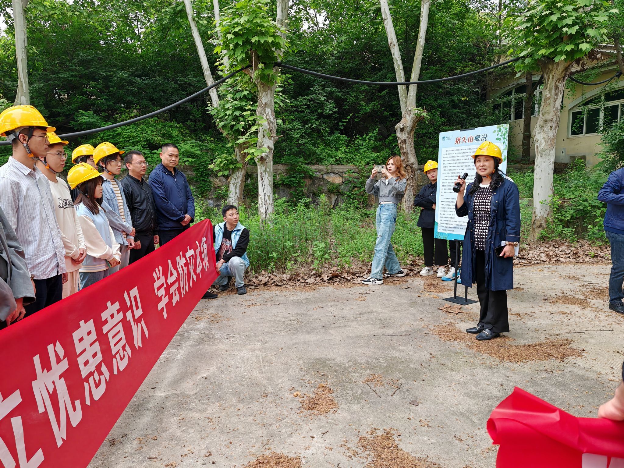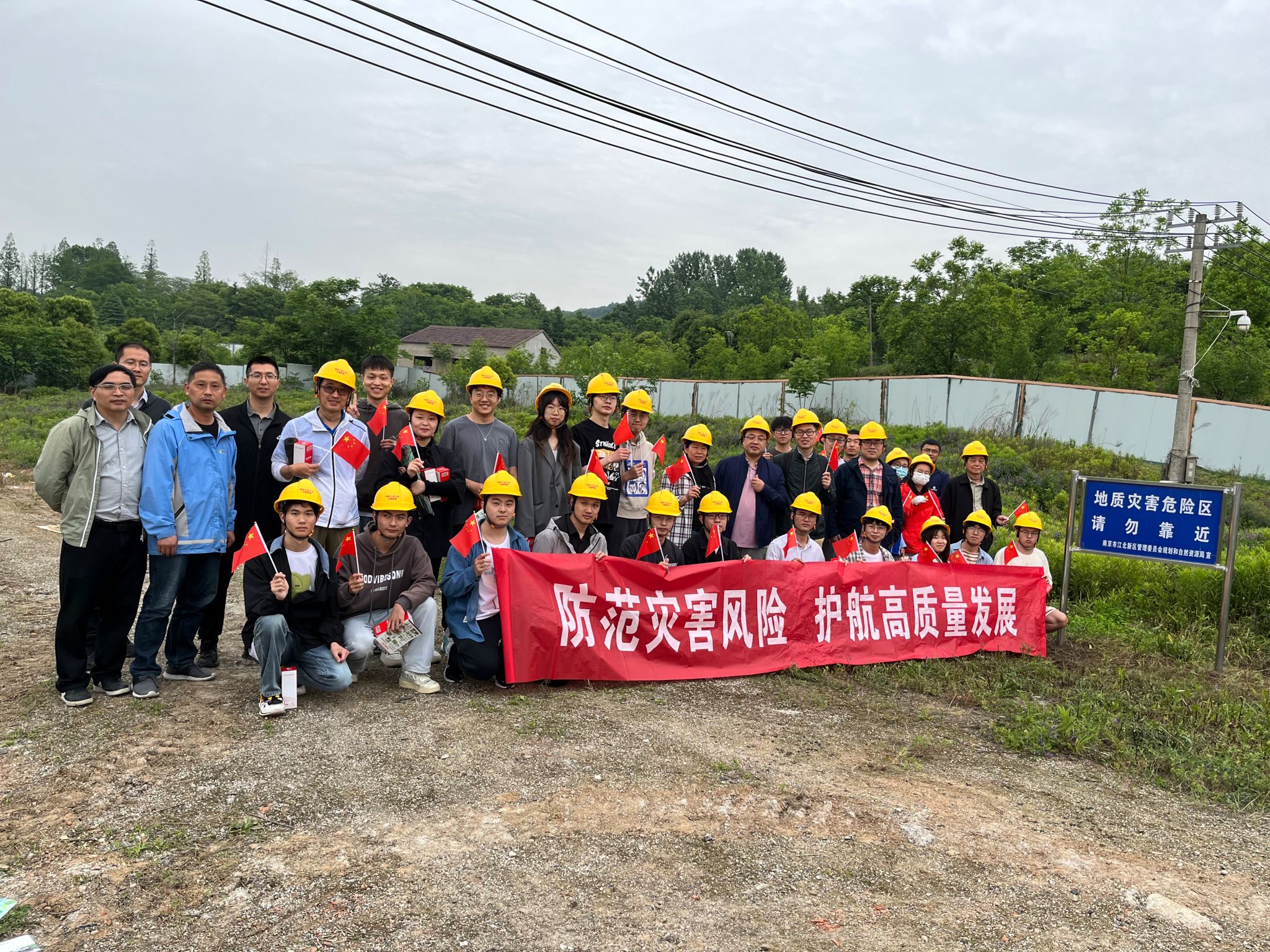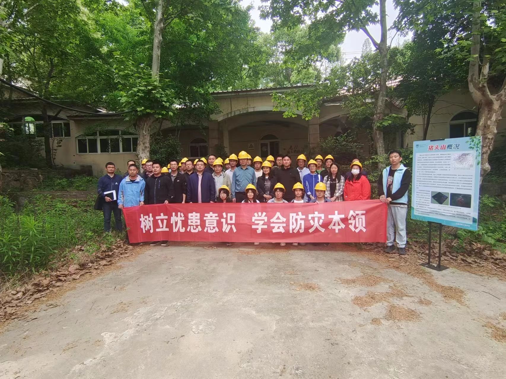在我国第15个防灾减灾日,太阳成集团122ccvip来到南京市江北新区泰山街道猪头山滑坡点开展“防灾减灾教育”主题党日活动,南京江北新区规划和自然资源局主任李韶凯,公司党委书记许翠梅、经理周峰,教师第一党支部全体党员与地质工程系师生代表参加活动。