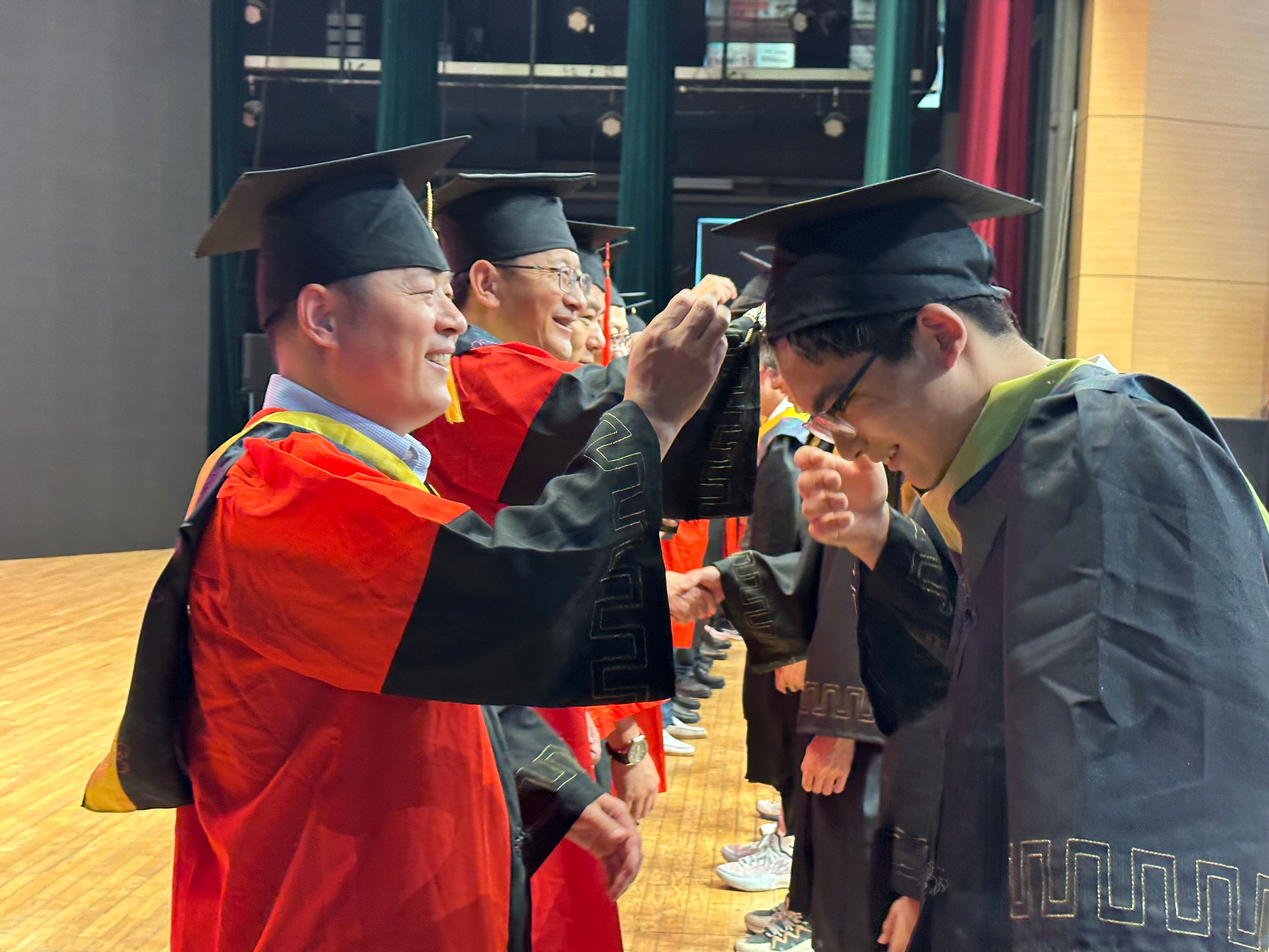 轻拨穗,正衣冠。老师们为毕业生一一拨穗,整理衣冠。周峰经理表达了对毕业生们的依依惜别之情,勉励同学们能在实践中继续学习,将大学所学的理论知识与实践结合起来,并加强人际交往和团队合作能力,不断总结,逐步完善,有所创新。希望同学们报国为先,提高新征程的“起跑动力”;实干为要,增强新征程的“持久定力”;奋斗为本,提升新征程的“冲刺能力”。谆谆嘱托和亲切叮咛引起毕业生的强烈共鸣,现场响起热烈的掌声。