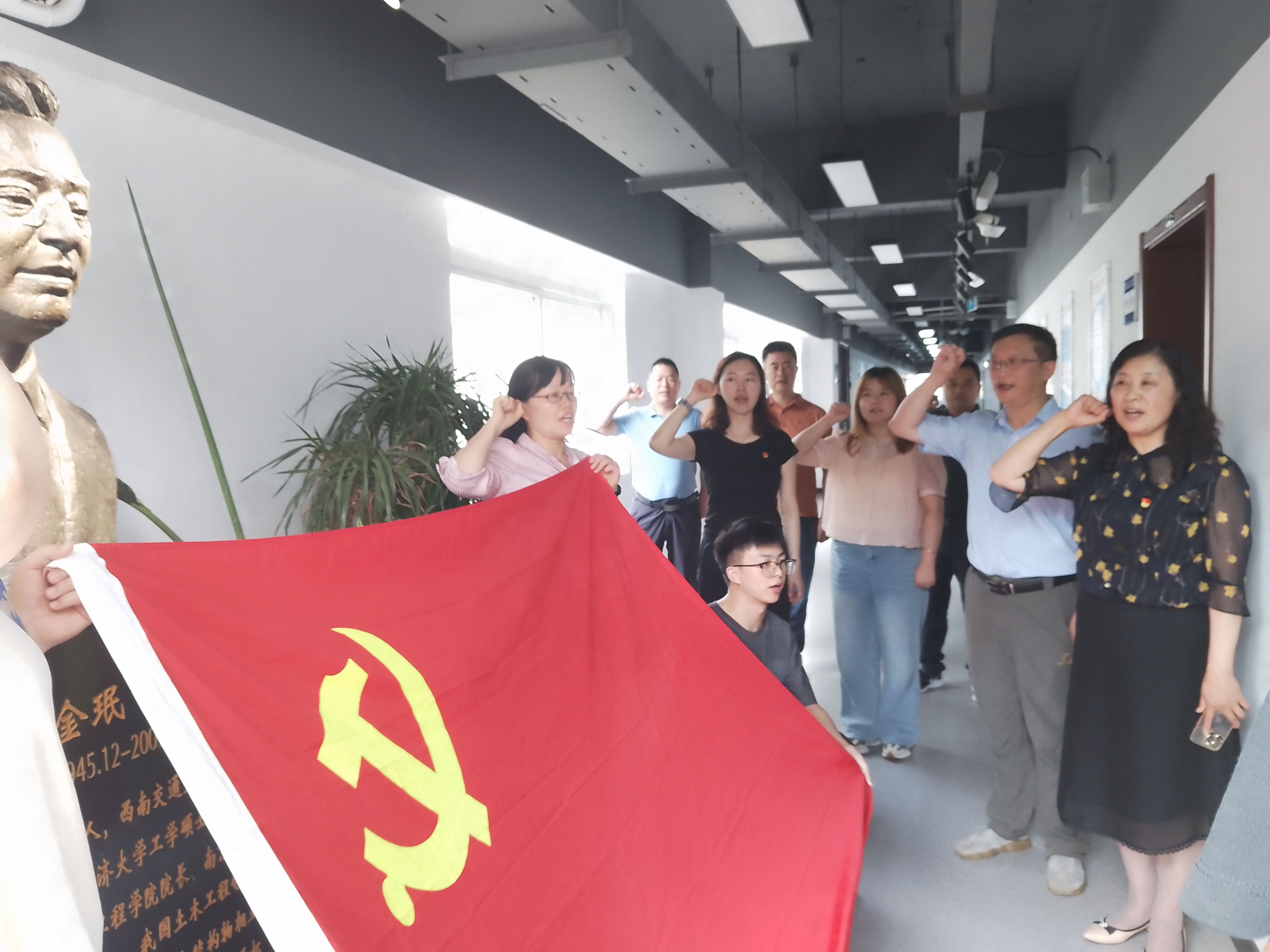 7月1日下午,公司在公司思政教育和文化建设阵地—宰金珉教授雕像前开展新党员集体宣誓活动,公司党委委员、师德十佳王旭东教授、员工党支部书记与新发展党员参加仪式,活动由党委副书记刘全振主持。