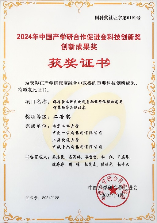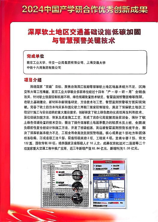 3月16日,第十六届中国产学研合作创新大会在北京召开,会上表彰了2024年在科技创新和产业创新中作出突出贡献的先进单位和个人,第十一届全国人大常委会原副委员长陈至立,十三届全国政协副主席、中国科协主席万钢等领导出席大会。公司吴志坚教授主持完成的“深厚软土地区交通基础设施低碳加固与智慧预警关键技术”成果荣获中国产学研合作创新成果奖二等奖。
