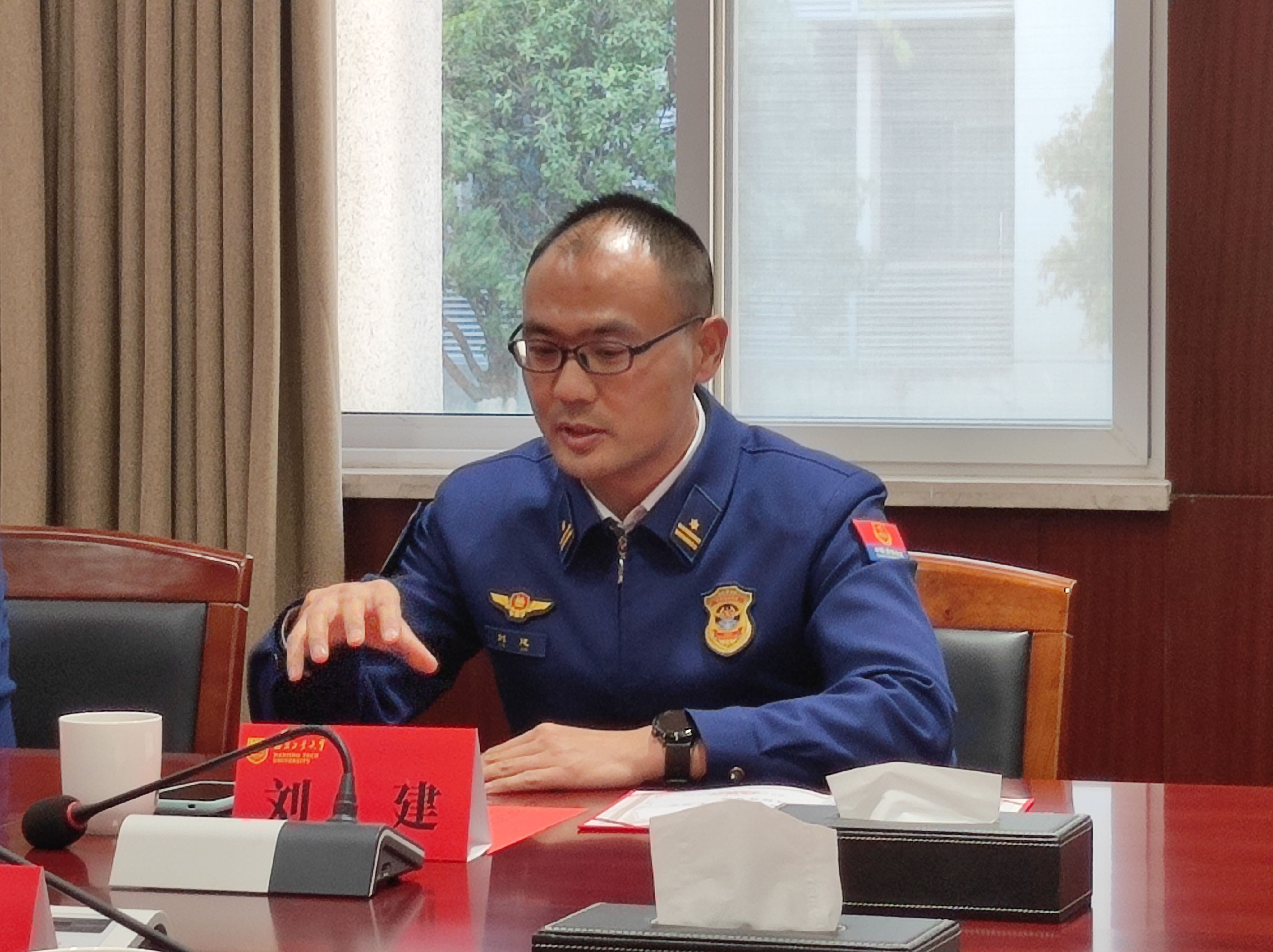 4月2日,国家消防救援局南京训练总队二大队大队长刘建,二大队政治教导员孟淼,一大队政治教导员赵磊等一行来公司开展校队合作交流。员工工作处副处长张杰,保卫处副处长李智,校团委副书记王菲,安全科学与工程公司经理喻源,公司党委书记许翠梅,经理周峰,副书记刘全振,副经理高洪梅、吴志坚等参加会议。会议由刘全振主持。