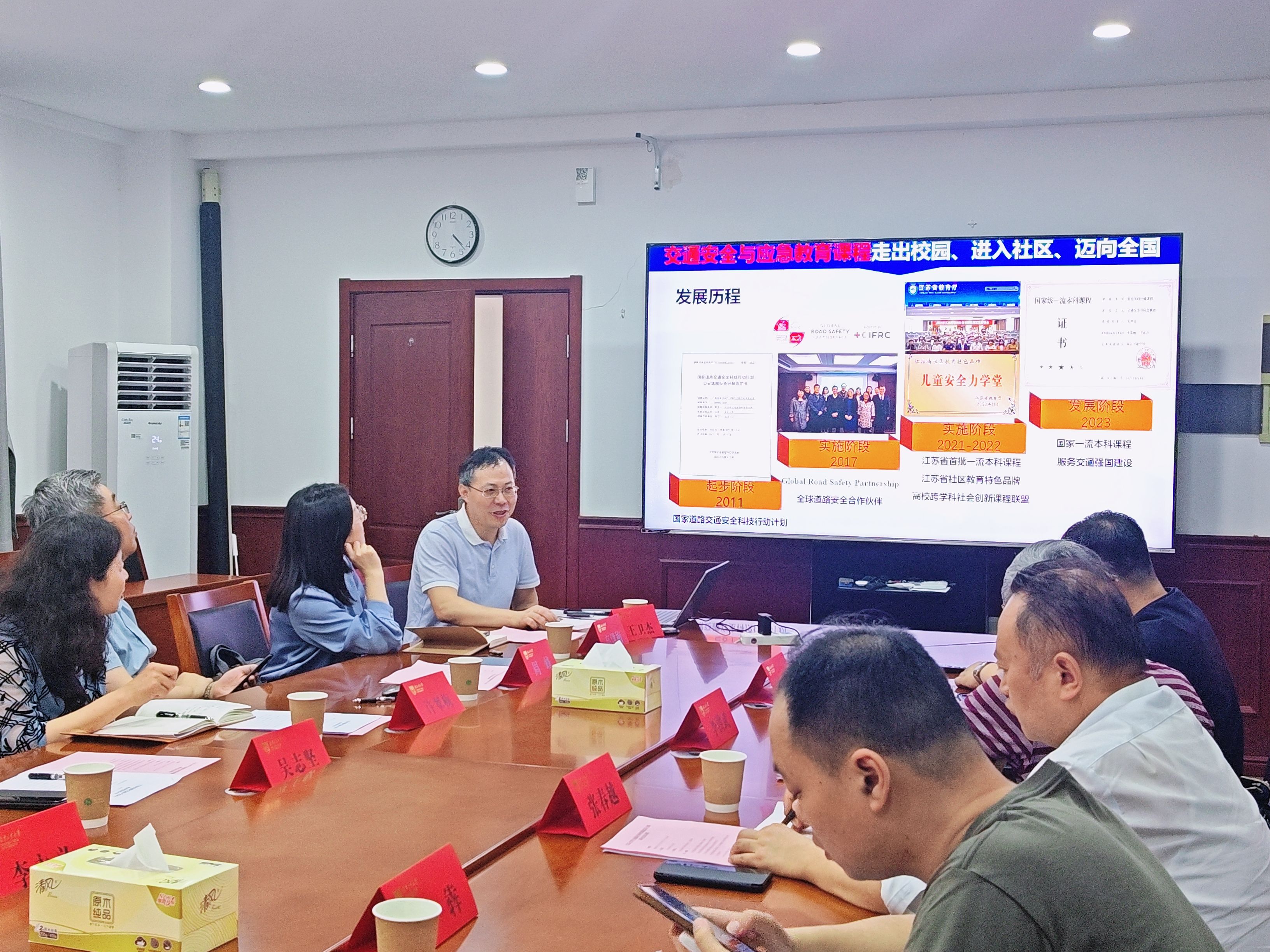 许翠梅对江苏省道路交通安全协会领导一行表示热烈欢迎,并介绍了公司的基本情况;吴志坚介绍了公司的相关情况。李洪武介绍了协会概况及近三年有关工作情况,并对公司的相关研究工作给予了指导。江苏省道路交通安全协会理事、交通工程系王卫杰教授介绍了交通安全相关研究及科普工作开展等情况。双方就道路交通安全研究展开交流,探讨了合作方向。周峰经理表示,公司将加强与协会的联系,紧密合作,共同推动交通安全领域的科技创新和人才培养。