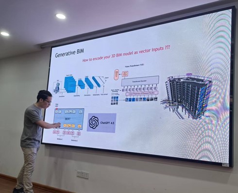 报告开场,汪军博士以巧妙提问激发师生对BIM技术的浓厚兴趣。随后,汪军博士着重介绍了其研发团队基于BIM技术打造的MetaBIM系统,该系统创新融合AI与区块链技术搭建起智能化协同平台,借助机器学习算法能够自动生成多元设计方案,并围绕能耗、成本、美学等多重目标进行优化,显著提升设计效率与创新水平。在探讨生成式AI于建筑全流程的应用时,汪军博士指出,其价值远超辅助工具范畴,已然成为驱动各环节变革的核心力量。在场师生围绕报告内容与汪军博士进行了热烈的讨论,学术氛围浓厚。报告会结束后,王志华教授团队与汪军博士深入交流,双方期待在智能交通、智能建造等科研领域开展进一步合作,为公司学科转型与国际化发展注入强劲动力。