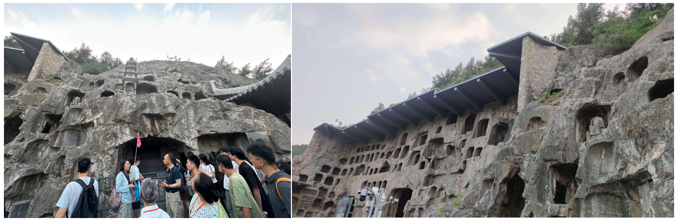 7月18日:龙门石窟——石刻艺术与地质保护的碰撞。 考察首站,师生们走进世界文化遗产龙门石窟。这里以寒武系碳酸盐岩为主体,单斜构造的稳定岩层与伊河峡谷的天然崖壁,为大规模石刻提供了理想的地质基础。然而,长期自然作用导致石窟面临渗漏水、生物侵蚀等病害,工作人员通过封堵裂缝、钻孔灌浆等技术综合治理,让千年石刻得以永续传承。同学们在惊叹石刻艺术魅力的同时,也直观理解了地质条件对文物保护的重要性。