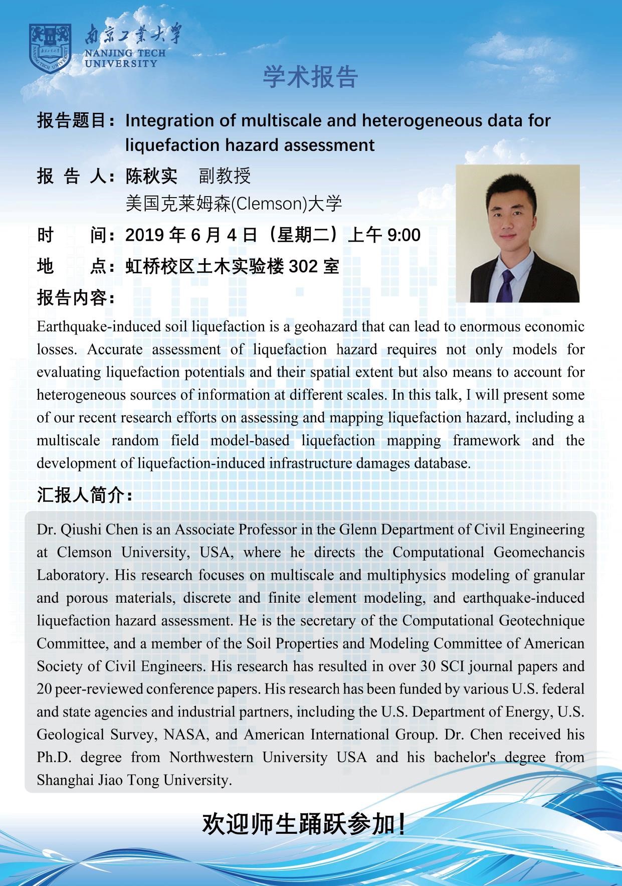 学术报告:Integration of multiscale and heterogeneous data for liquefaction hazard assessment