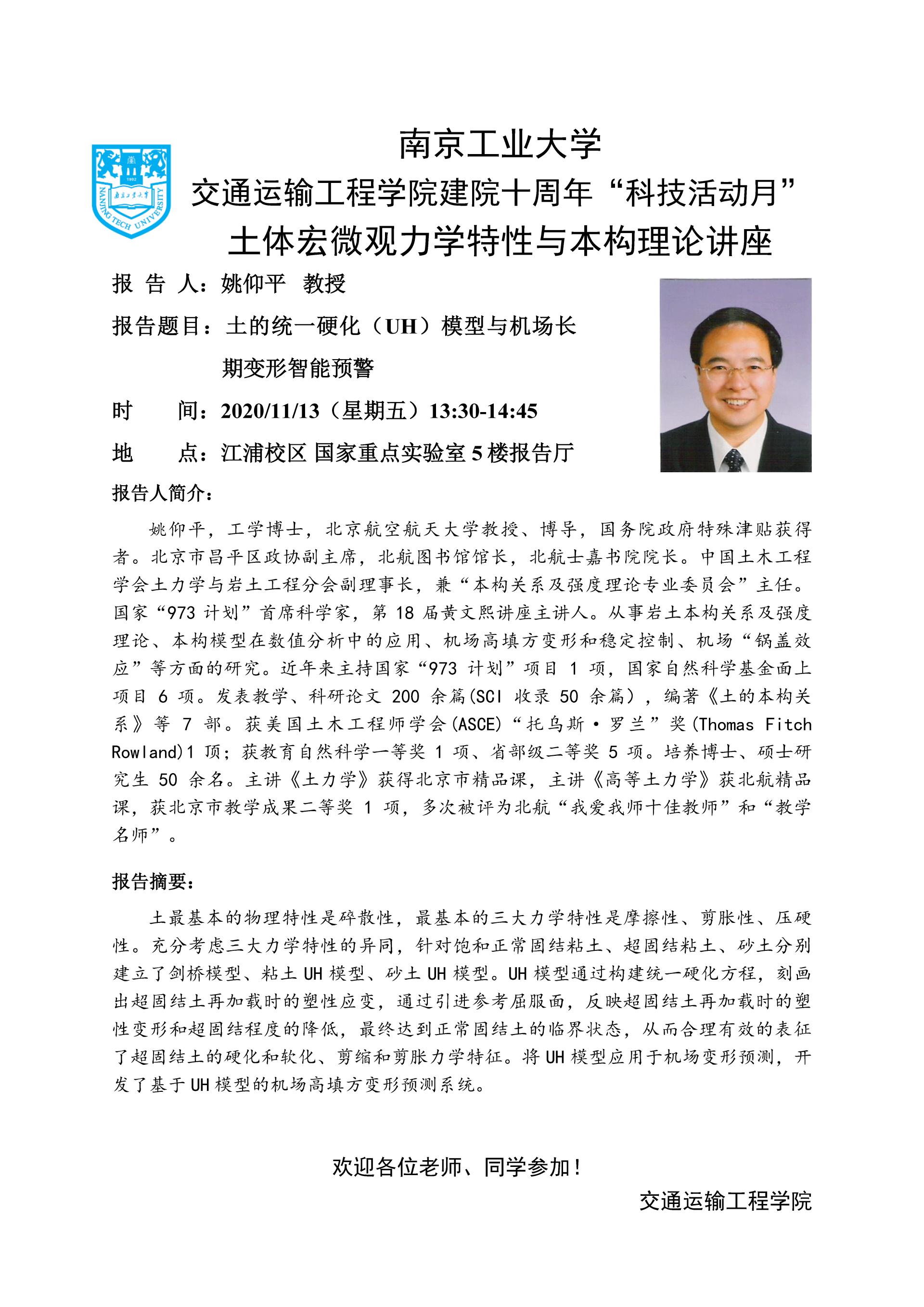 学术报告:土的统一硬化(UH)模型与机场长期变形智能预警