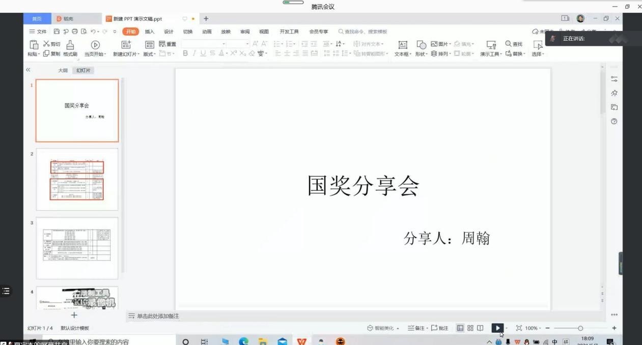 周翰同学讲述了获得国家奖学金所需要具备的条件,展示了国奖的评审标准,让同学们明确了未来努力方向。