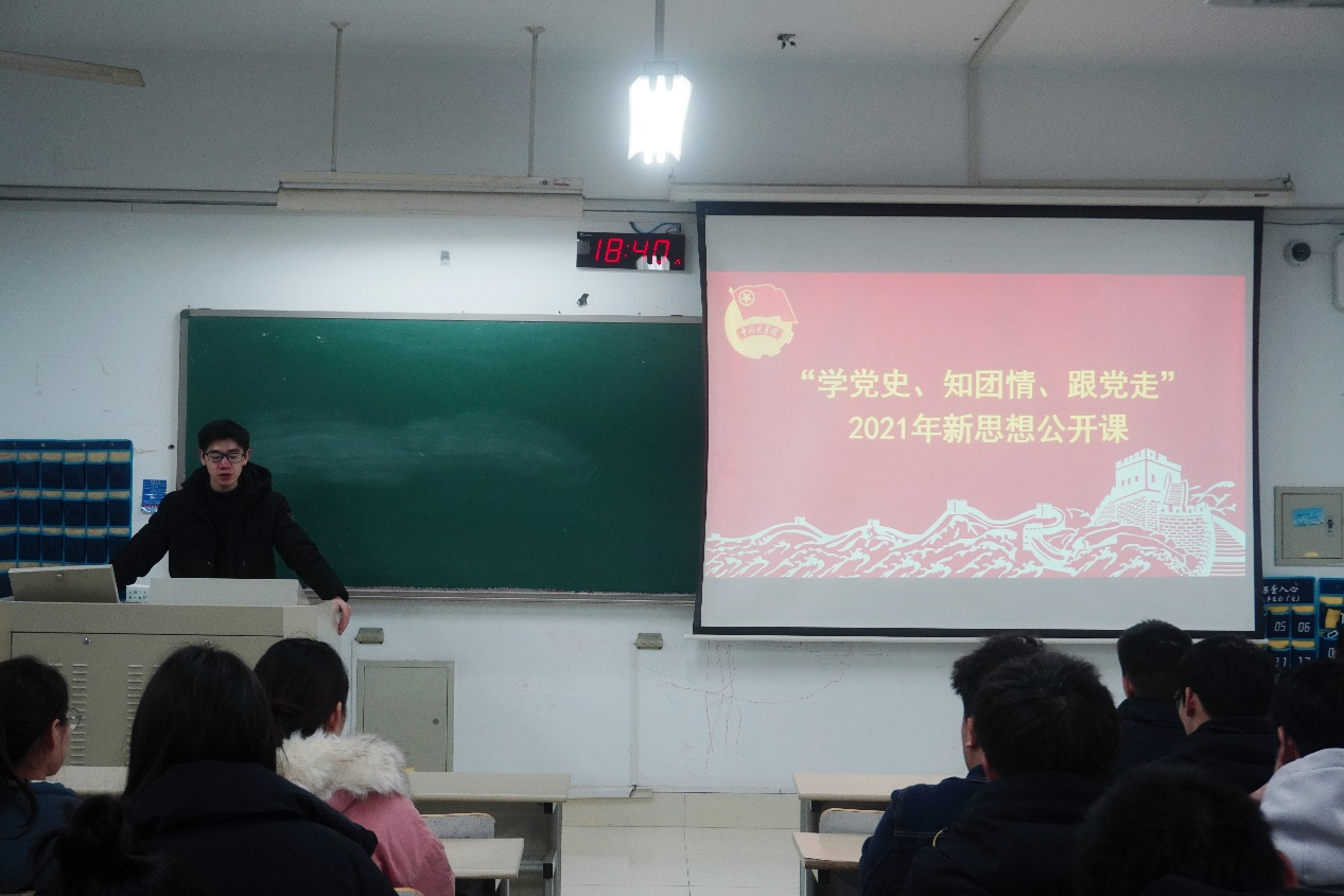 为深入学习贯彻习近平新时代中国特色社会主义思想,引导广大共青团员从党史学习中鼓舞斗志、明确方向、坚定信念,12月1日晚,公司团委于同和418教室举办“学党史、知团情、跟党走”2021年新思想公开课,学院团委副书记袁志平及全院团支委参加活动。