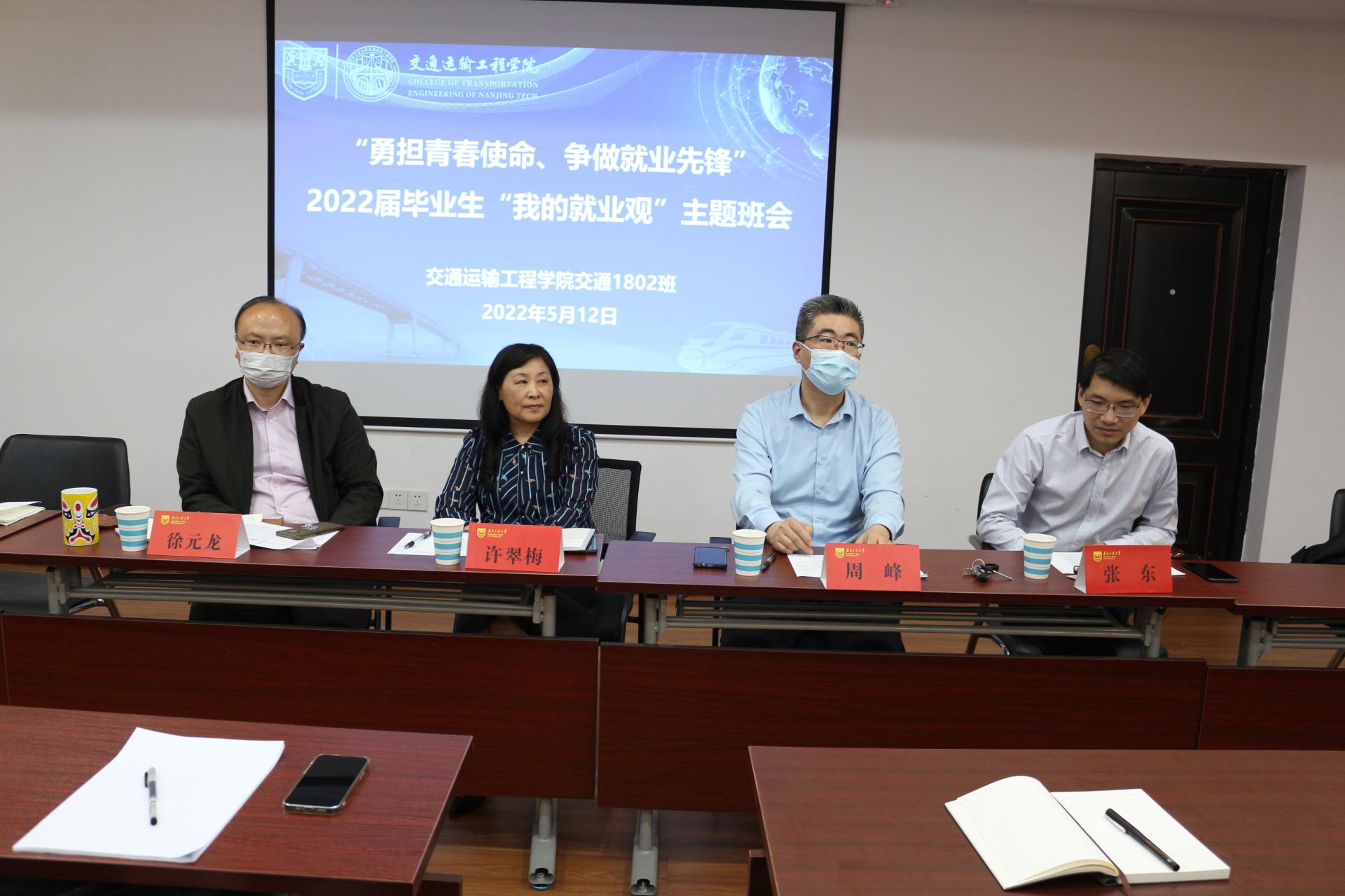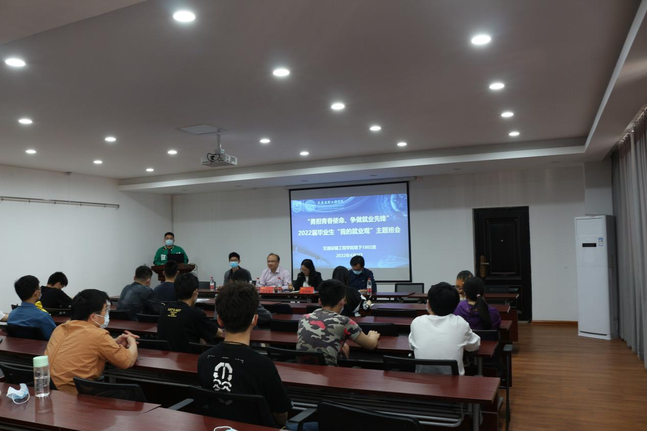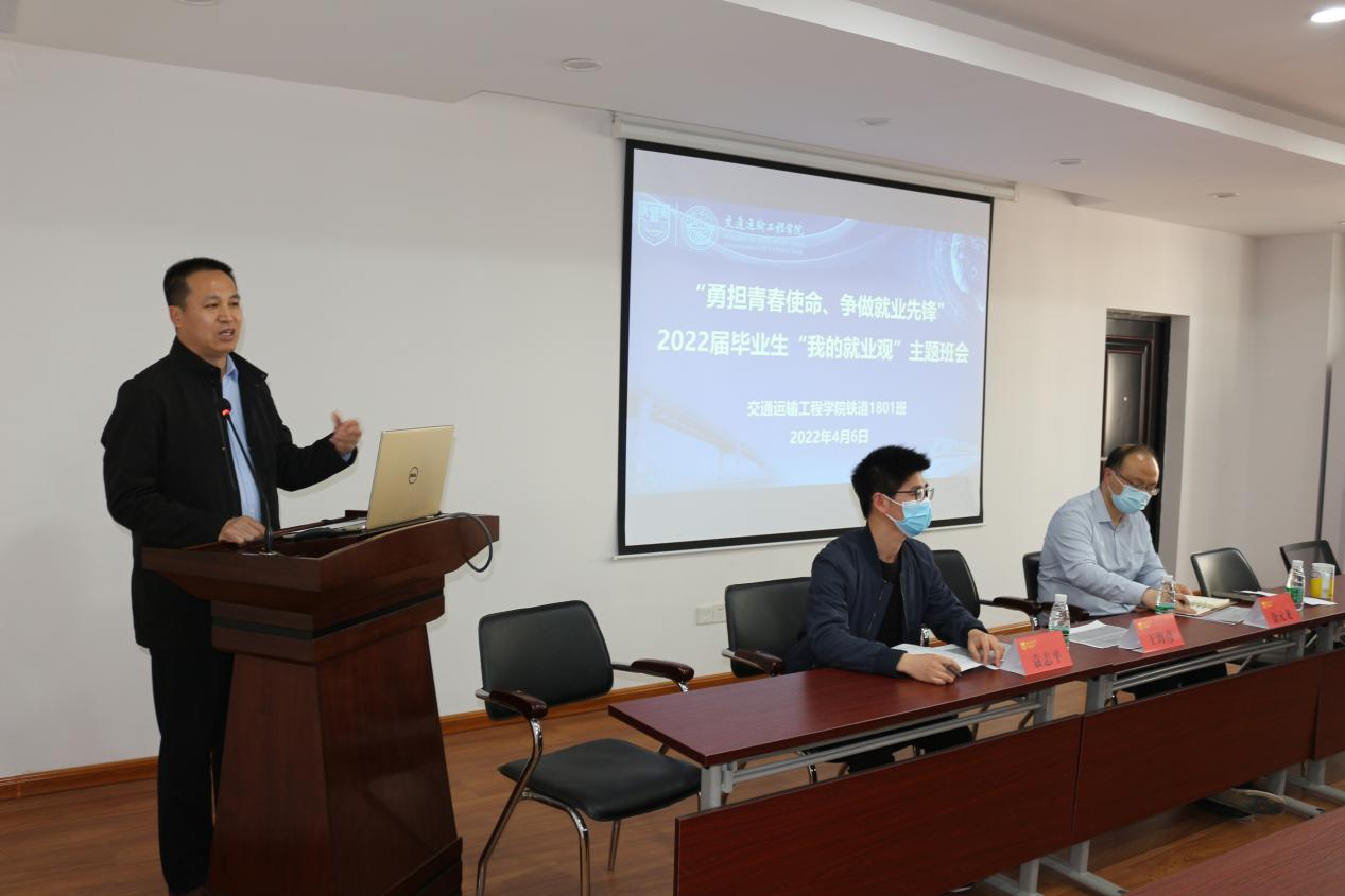 为深入贯彻落实公司关于2022届毕业生就业工作的决策部署,积极探索就业育人新模式,教育引导毕业生把个人理想追求融入现代化国家建设新征程,2022年4月6日至5月12日,太阳成集团122ccvip于天工530报告厅举办“勇担青春使命 争做就业先锋”2022届毕业生“我的就业观”主题班会,公司党委书记许翠梅、经理周峰、党委副书记徐元龙、副经理高洪梅、副经理吴志坚、铁道工程系王海彦教授、地下工程系主任宋著、交通工程系党支部书记张东、地质1801导师班主任胡彦博等教师出席活动,班会由2022届毕业班辅导员袁志平主持。