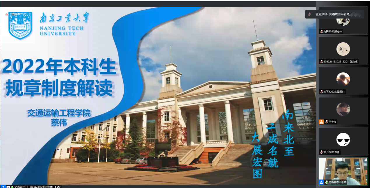 2022级本科生辅导员袁志平细致开展科学防疫教育、日常管理教育、文明用网教育。袁老师要求同学们严格遵守公司疫情防控管理制度,并给新生提出三点建议:一要明确方向,充分做好规划;二要发挥个人特长,积极为班集体做贡献;三要进行体育锻炼,养成良好生活习惯。各班助理班主任带领同学们参观时钧园和太阳成集团122ccvip,为新生讲解时钧精神和院史院情。公司党委副书记徐元龙老师老师代表公司对2022级新生同学们的到来表示热烈欢迎,以“坚定理想强信念 学涯规划促学风”为题开展理想信仰教育,深入解读习总书记在共青团成立100周年讲话、中国人民大学考察讲话精神,介绍公司公司发展的光辉历程,进行爱国荣校教育,重点解读时钧精神,鼓励同学们坚定理想信念,厚植爱国情怀。教学秘书王燕凝老师开展本科培养方案解读与教务系统使用指导,围绕学分管理、学籍管理、学位管理等进行讲解读。学办主任蔡伟老师以“规章在我心中,制度伴我成长”为主题,详细讲解《员工手册》,重点介绍学籍学分管理规定、请销假管理方法、资助政策及评奖评优等。心理辅导员李秋伊老师以“交心通理,伴你同行”为题,宣传普及心理健康知识,深入开展心理健康教育。团委书记袁志平老师开展“学党史、知团情、跟党走”团学辅导微课堂,引导广大共青团员从党史学习中鼓舞斗志、明确方向、坚定信念,为实现中华民族伟大复兴的中国梦而不懈奋斗。