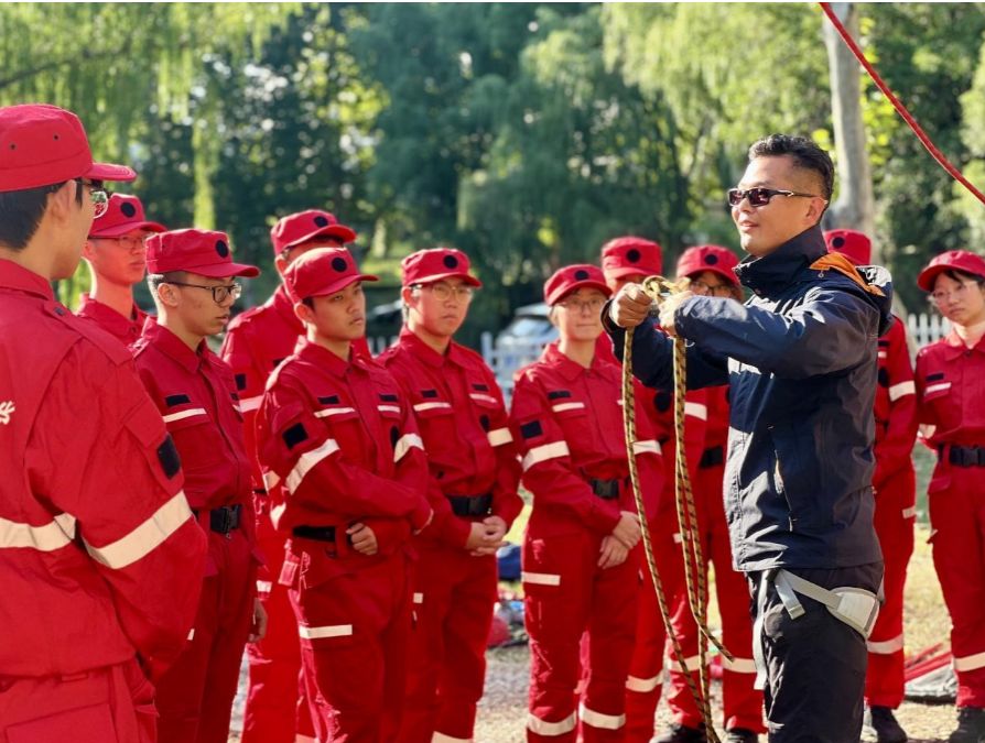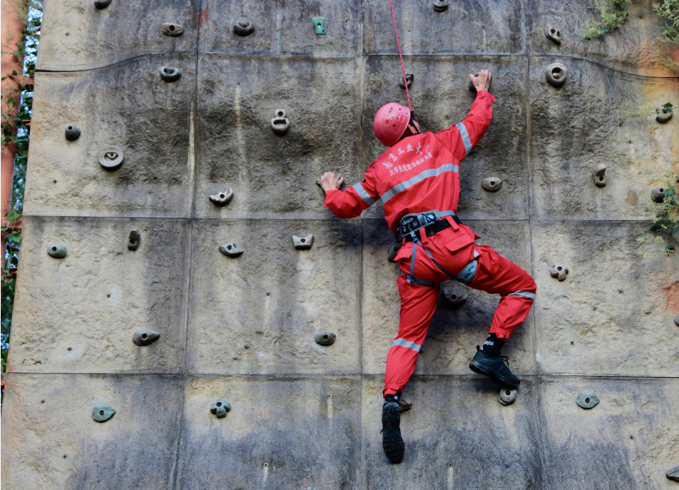 活动分为破冰游戏和技能训练两部分。队员们面对面进行自我介绍和“抓手游戏”,增进团队感情。韩胜豪老师为志愿者们开展救援能力和专业素养培训。过程中,他通过生动的讲解和实际操作演示,向老员工志愿者们传授各种救援知识和技能,包括急救处理、灾难应对、绳索技术等。志愿者们认真聆听动作要点,积极参与实践操作。队员们还依次进行“勇攀高峰”攀岩训练,队员们克服恐惧和畏难心理,挑战自我,勇攀高峰。