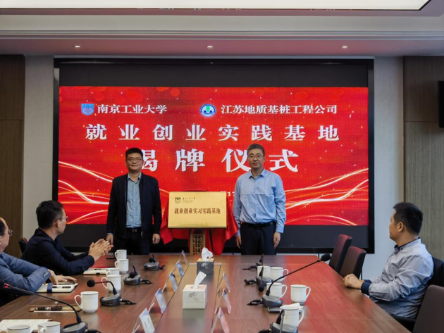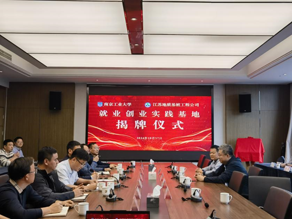 会上,王卫国书记致欢迎辞,他介绍了江苏地质基桩工程公司的发展历史、公司定位、业务范围、人才需求等情况。刘全振副书记介绍了公司公司的历史沿革、专业设置、团队队伍、学科特色、人才培养模式等。在就业创业实习实训基地揭牌仪式后,双方就产学研合作以及就业创业实习实训基地建设展开了交流讨论并作出展望。