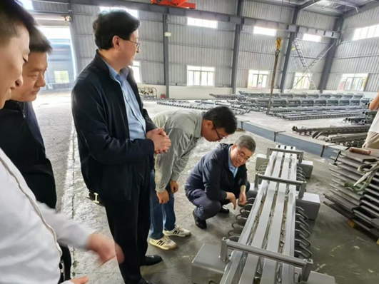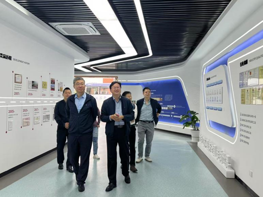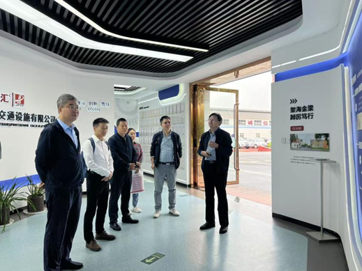 会前,周峰经理一行在副总经理王建波的带领下参观了公司的成果展厅、产品研发中心、生产车间、实验室以及各种新型交通设施产品。