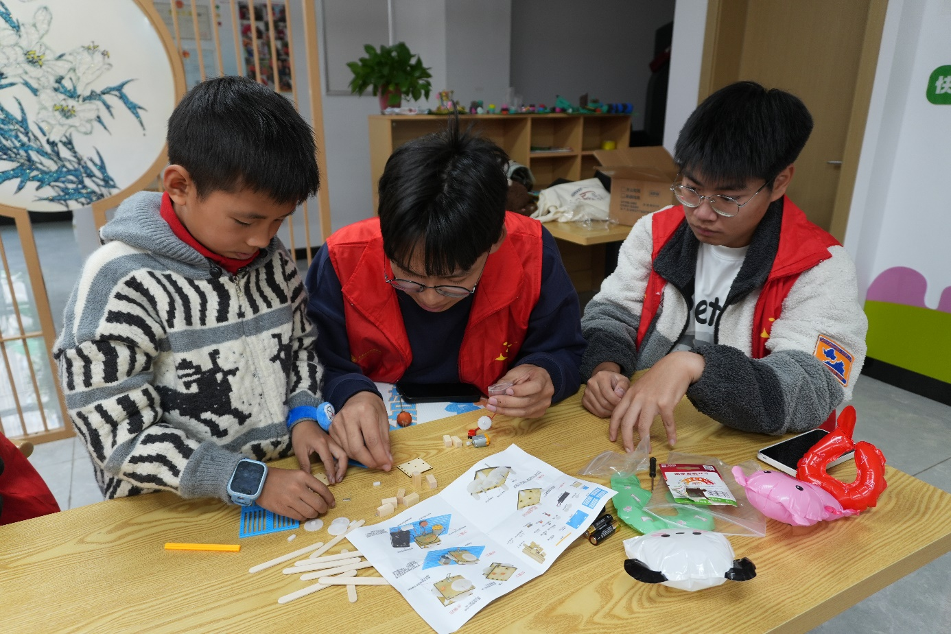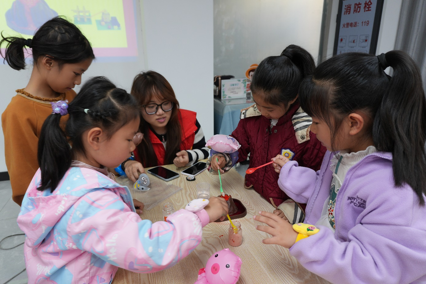 随后,志愿者们带着小朋友们通过灾害模拟小实验,体验了火山爆发、地震震动等趣味小实验,生动形象地学习了地震预警原理、龙卷风等自然灾害的形成原理,开拓了科学视野,提高了动手操作能力。
