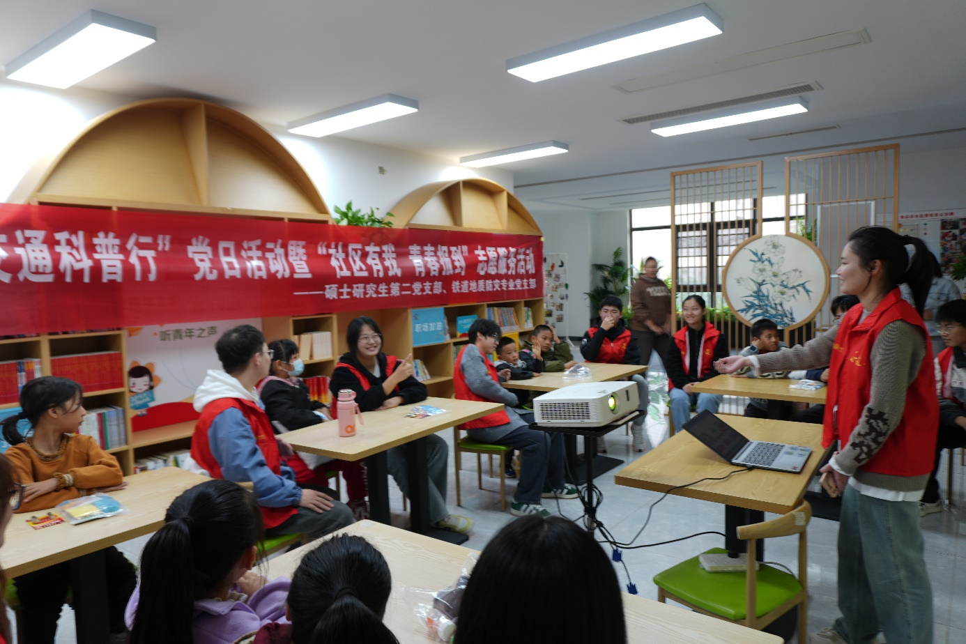 本次活动包括科普小讲座及实验互动体验环节,旨在提高社区儿童交通安全意识与防灾应急避险能力。活动伊始,团队成员将交通安全和防灾减灾小知识融入“看图说话”“互动问答”等有奖竞答互动小游戏,充分调动了小朋友们的兴趣与参与积极性。科普小讲座中,成员们以通俗易懂的讲解向小朋友们阐述了地震与泥石流的发生原因以及逃生方法,帮助儿童掌握各类灾害发生时正确的自救互救技能。