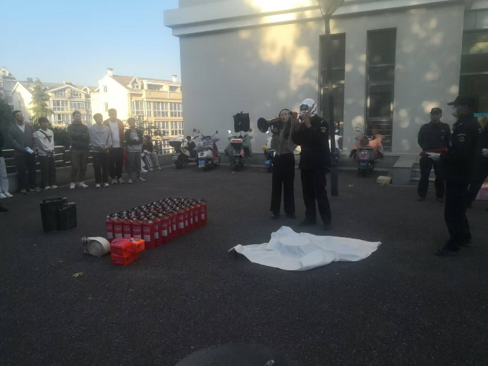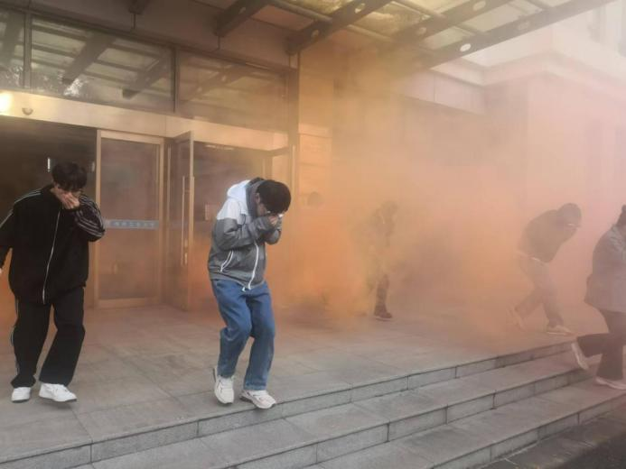 会议结束后,消防演练在立德楼前广场紧锣密鼓地展开,张思宇科长亲自指挥,模拟火灾现场,浓烟滚滚,警报声震耳欲聋。在有序的组织下,六院师生代表迅速而有序地完成疏散,并投入到紧张而有序的消防实战演习中。演习前,一场别开生面的消防知识趣味问答,激发了参与者的热情,现场气氛活跃。实操环节涵盖了消防防毒面具的正确佩戴、消防水带、灭火毯及灭火器的规范使用,更让师生亲身体验了消火栓喷水的实际操作,进一步提升了应急处置能力。