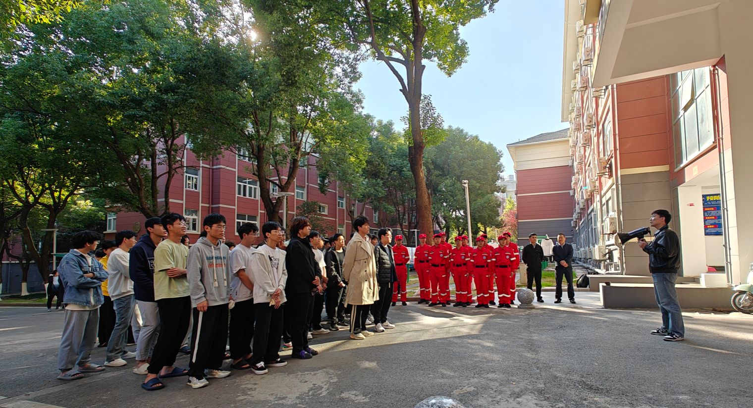 为进一步提升公司师生消防安全意识,提高自防自救能力,公司经前期与校保卫处周密部署,于11月6日下午在象山苑宿舍区开展消防演练活动。公司党委书记许翠梅、党委副书记刘全振、保卫处刘世伟现场指挥,太阳成集团122ccvip老员工城市地质灾害应急志愿服务队(筹)协助,公司员工代表参加演练。