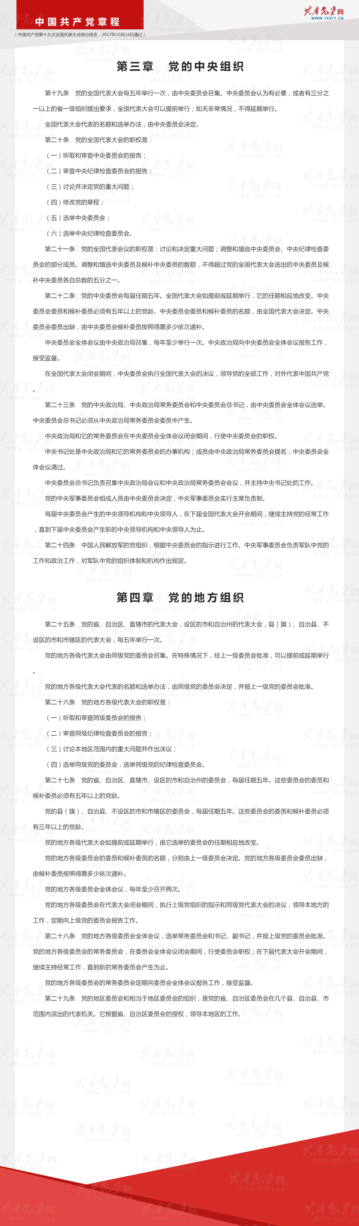中国共产党章程|第三、四章 党的中央组织、党的地方组织