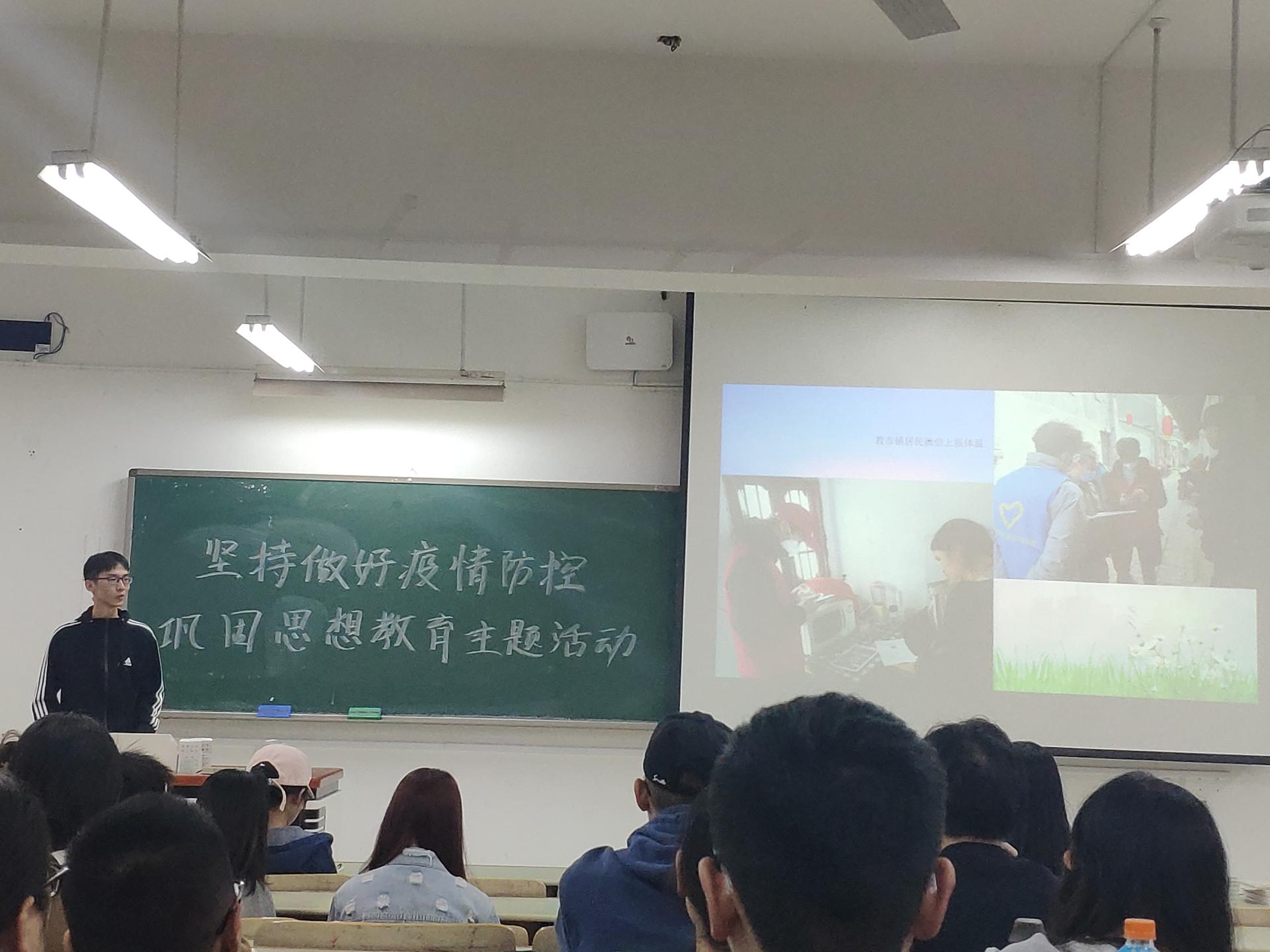 活动伊始,李政同学详细地为大家讲述了关于新冠病毒的相关知识,介绍了感染后的症状,敦促大家发现后要及时进行医治,切实做好疫情期间的防控工作。他结合“两学一做”,为大家解读了不忘初心、牢记使命的思想与当下疫情的联系。接着张奕彬同学上台分享了他在疫情期间作为一名志愿者的事迹及防疫心得,让大家真实地感受到疫情下每个人的默默付出,正是全民动员,共同战役,让疫情得到了有效控制。随后是关于疫情知识及党章知识答题的游戏环节,同学们踊跃报名,在答题中获得知识与快乐,参赛同学都收获颇多。获胜的同学对自己在疫情期间的思想感悟进行了分享:如看着一批批志愿者奔赴抗疫一线,自己对待疫情的态度转变;如对比国内外不同的处理方式,感悟到党和政府对人民生命安全的重视。疫情的防控离不开每个人的努力,不忘初心、牢记使命,才能打好疫情防控战役。