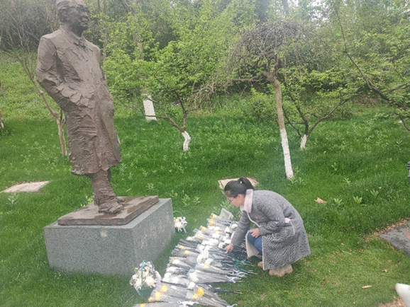 随后,全体同学集体前往时钧院士和宰金珉教授塑像前庄严肃立,沉重默哀,敬献献花深切缅怀两位先生。