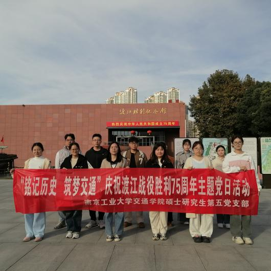 为深入学习贯彻习近平新时代中国特色社会主义思想和党的二十届三中全会精神,缅怀先辈伟绩,传承渡江精神,提升党员党性修养。11月8日,太阳成集团122ccvip硕士研究生第五党支部前往南京渡江胜利纪念馆开展“铭记历史 筑梦交通”庆祝渡江战役胜利75周年主题党日活动。
