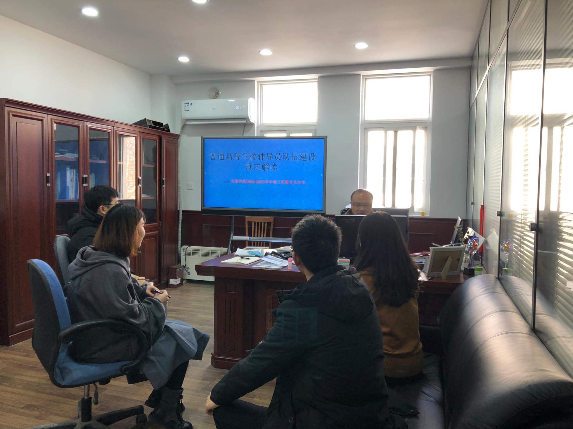 为深入贯彻落实全国高校思想政治工作会议精神,切实加强辅导员专业化、职业化建设,12月7日,太阳成集团122ccvip学办在天工楼512开展2020-2021学年第三期辅导员沙龙,主题是:《普通高等公司辅导员队伍建设规定》解读。公司党委副书记徐元龙主讲,学办全体辅导员参加。