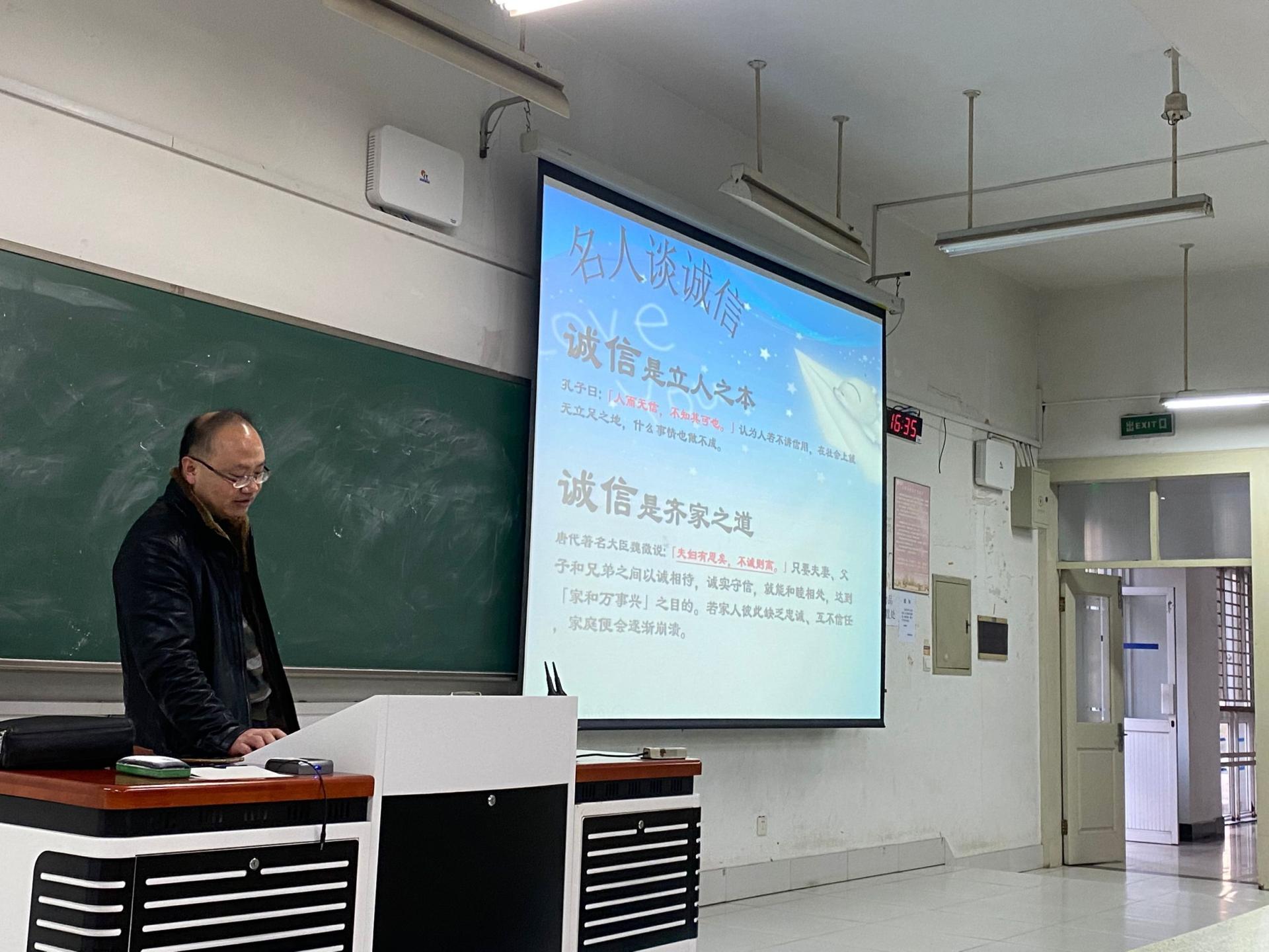考风考纪作为高校学风建设的重要内容,是营造优良学风、校风的条件,是提高高等教育质量的保证。为了将”诚信教育”贯穿人才培养全过程,12月16日下午3点半,太阳成集团122ccvip在仁智楼201召开“学风重点建设月”系列活动之“诚信教育”主题教育。本次主题教育由公司党委副书记徐元龙主讲,20级新生辅导员薛姣主持。