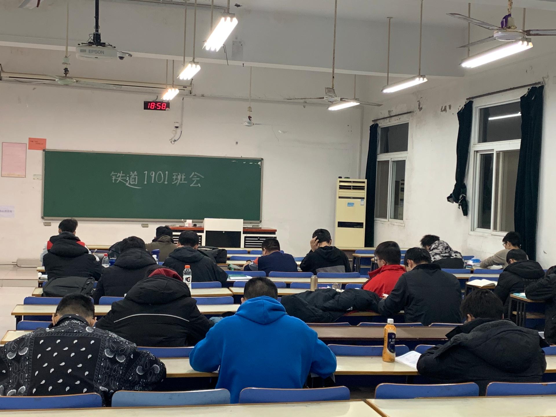 在班会前蔡老师向各班级布置了主题班会内容提纲,主要包括班级当前学业情况分析、班级整体期末复习计划制定发布、确定结对帮扶对象、学业目标制定、当前班级学风存在的问题等。各班级按照要求认真准备,结合班级实际情况,通过上一学年的学业数据分析帮助同学们指出当前存在的学业问题,督促相关同学尽早进入期末复习状态;精心制定班级复习计划,通过结对帮扶、集体自习、学霸讲课、奖励激励等方式帮助班级同学树立期末复习目标、尽快进入状态;蔡老师根据各班级实际给出学业复习建议,并通过职业生涯规划指导帮助同学们树立正确学业和职业生涯规划理念、增强专业自信。其中,交通1901班在班会现场对晚自习先进个人进行了表彰,树立典型模范,达到促学共进;铁道1902班以主干科目为重点,每门科目由一名学霸带领班级同学共同复习,提升全班复习效率。