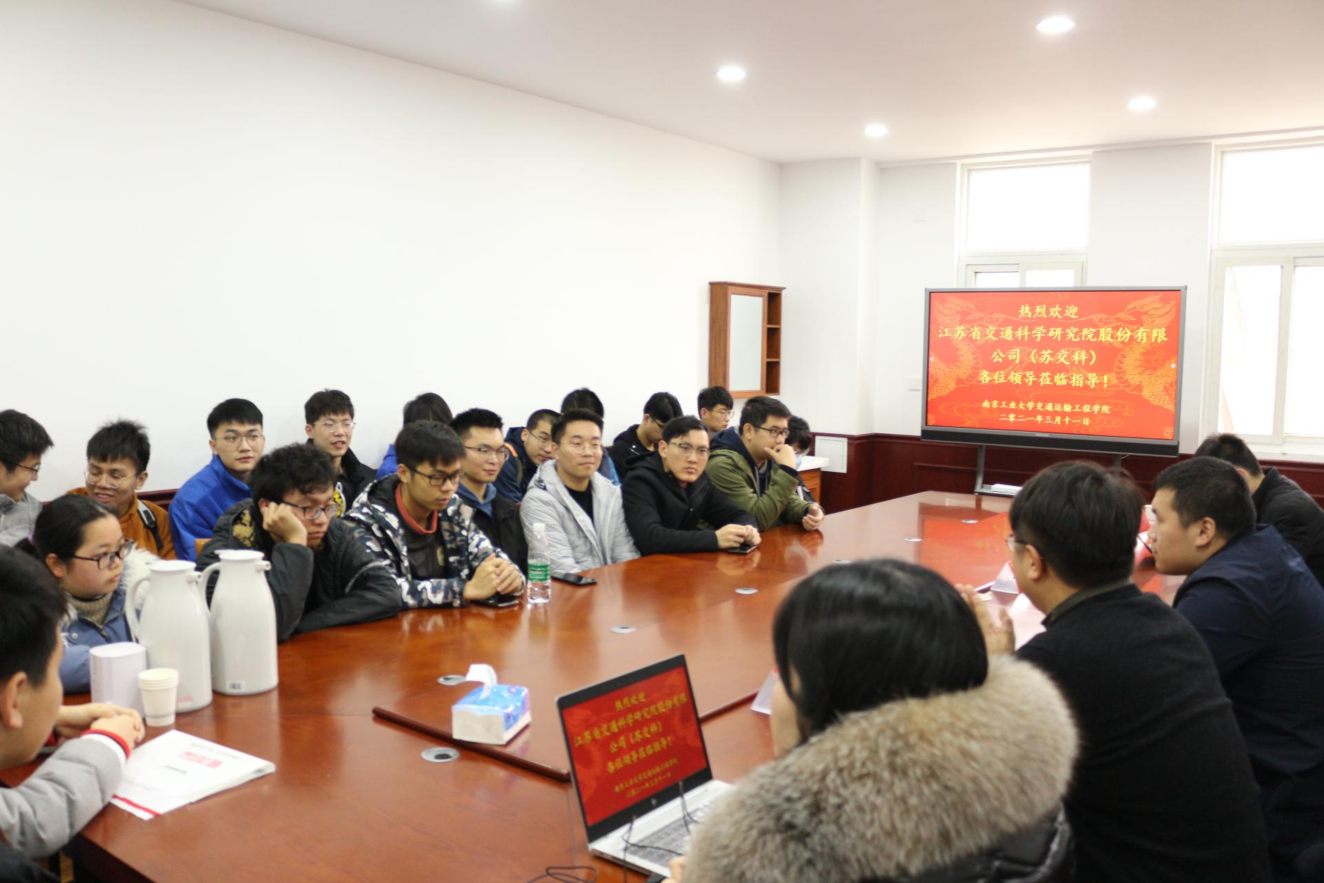 2021届毕业班辅导员弭老师对苏交科员工回母校与学弟学妹指导职业生涯规划表示衷心感谢,简要介绍了公司毕业生重点就业企业苏交科录用的历届毕业生最新发展情况,并简要介绍了公司和2021届毕业生就业进展。随后,苏交科曹经理介绍了苏交科概况,包括行业定位、薪酬体系、晋升体系和人才培养计划。鼓励同学们先就业,在实践中规划好职业生涯。综合部副总梁海丰结合苏交科岗位设置分别介绍了技术、营销与职能的职位体系和晋升通道,强调同学们要规划好未来职业发展方向,在项目中实现价值,快速成长。