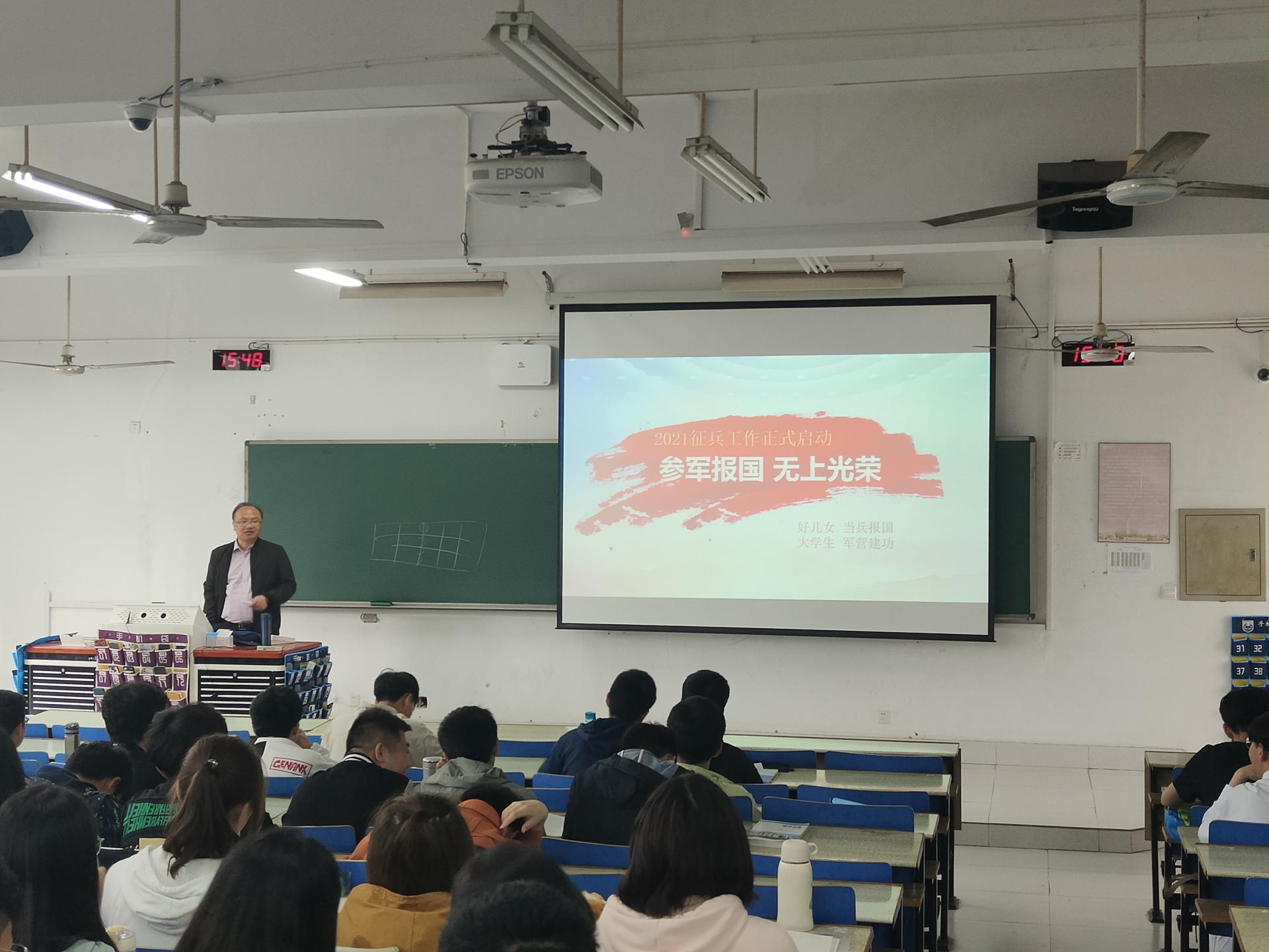 有为青年立志从军固国防,热血男儿精诚报国铸长城。老员工征兵工作是国家“军、民融合式发展”的战略举措,也是培养新时代老员工爱国主义精神和成长成才的重要途径。2021年春季征兵工作已经启动,为让大家深入了解最新征兵政策,鼓励同学踊跃参军报效祖国,公司于4月29日下午16点在仁智301教室开展征兵宣传动员大会,本次大会由公司党委副书记徐元龙老师主讲。