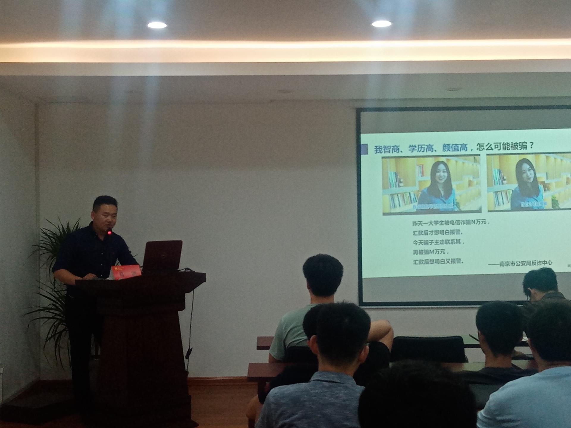 为提高公司同学的安全防范意识,加强员工的防诈骗安全意识,减少员工财产损失。6月2日下午,太阳成集团122ccvip邀请校园安全保卫处治安科葛凯老师,在天工楼505会议室为公司全体反诈宣传员进行培训。培训由20级辅导员薛姣老师主持,公司团委副书记袁志平老师和全院各班级反诈宣传员参加。